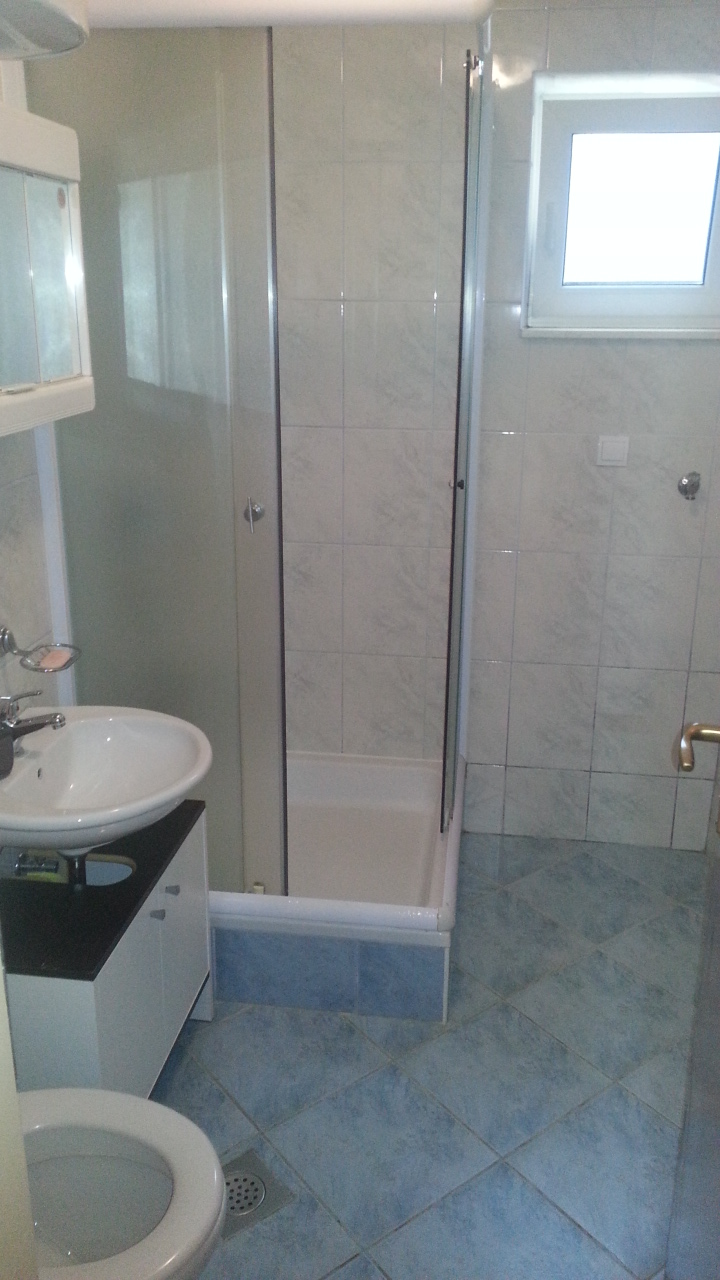 80m²; Drei separate Schlafzimmer mit Doppelbetten, eine Küche mit Essbereich und ein Wohnzimmer mit einem Schlafsofa, ein Badezimmer mit WC, ein separates WC, eine Terrasse, Klimaanlage, TV, WLAN und ein Parkplatz.
