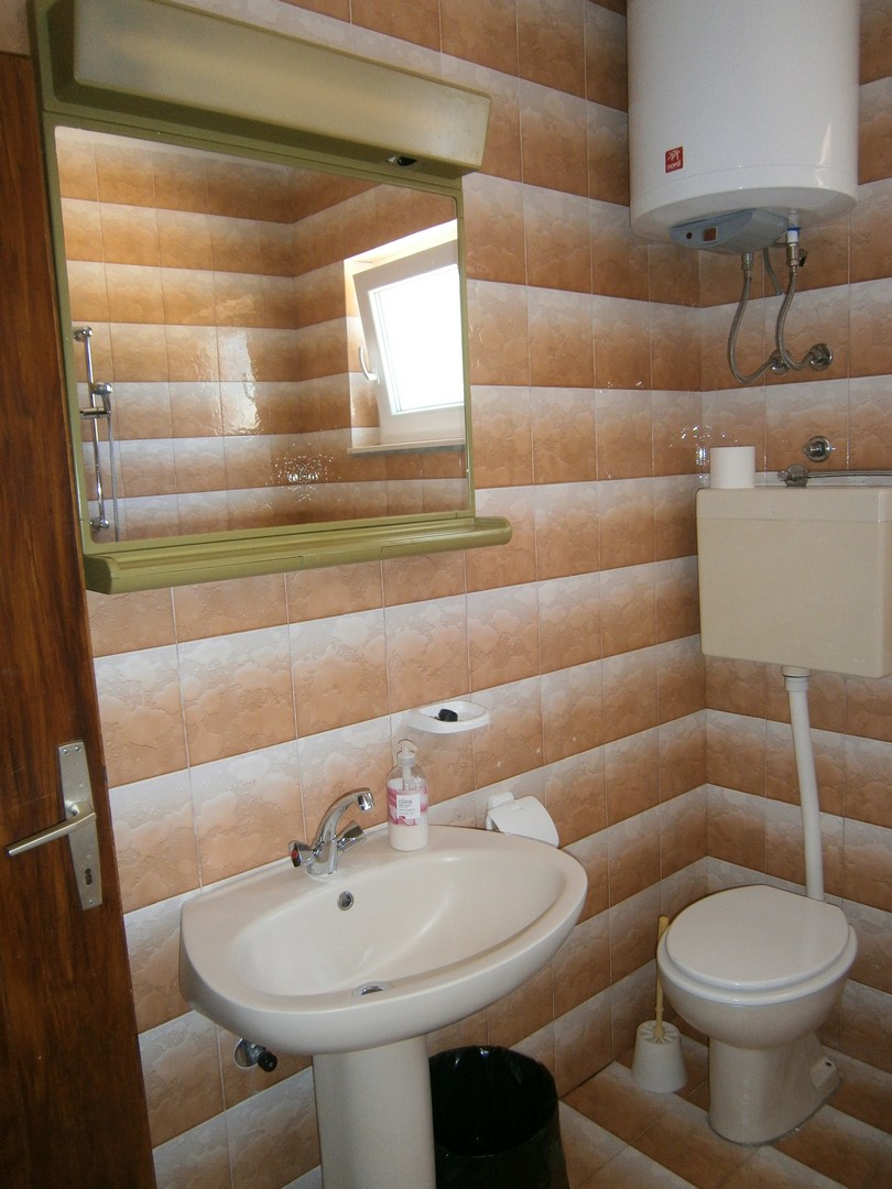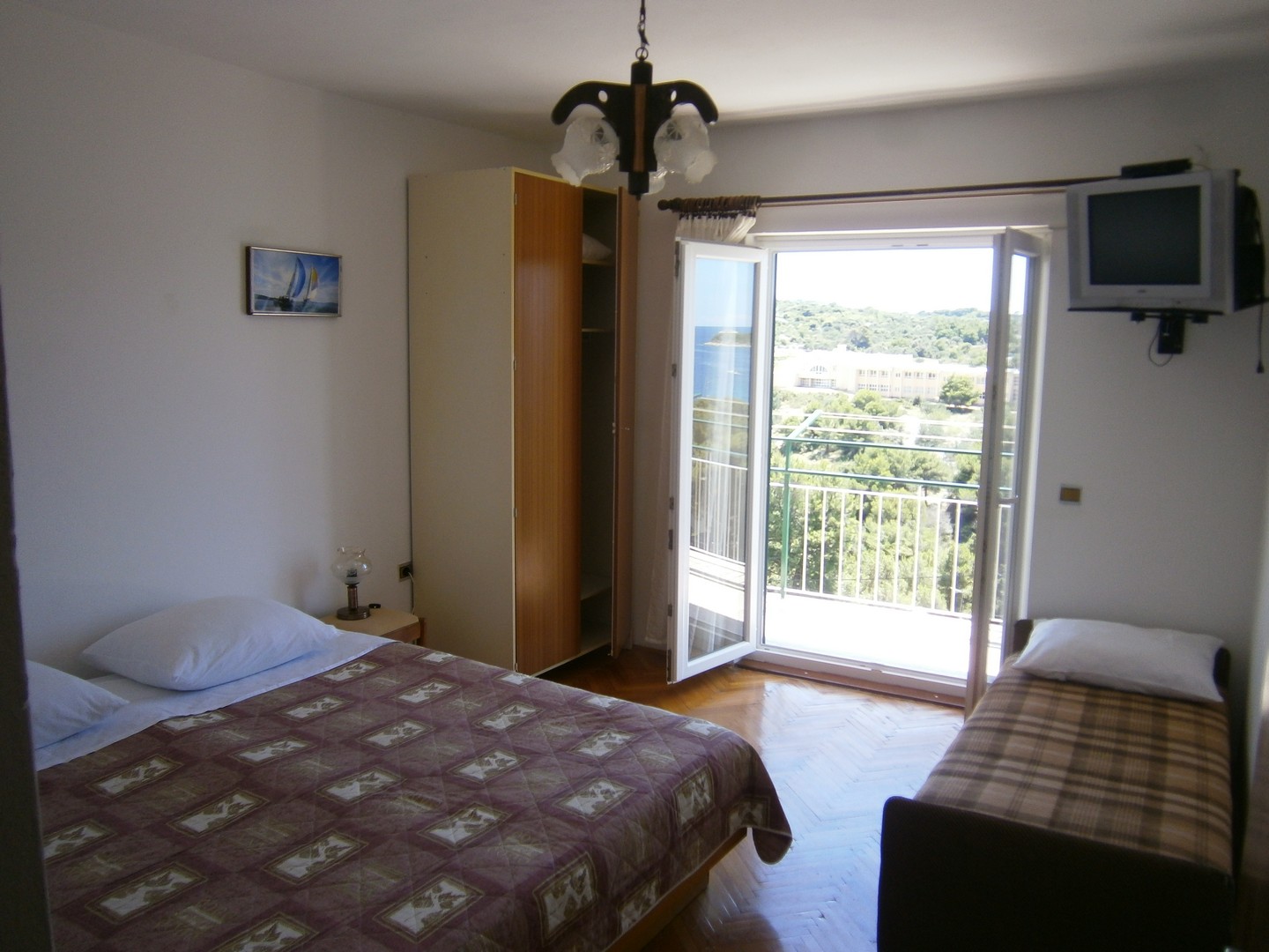 100m²; Vier Schlafzimmer mit Doppelbetten, eins davon mit einem zusätzlichen Einzelbett; Küche mit Esszimmer und Wohnzimmer mit Ausziehsofa, zwei Badezimmer mit WC, Balkon mit Blick auf Primošten und das Meer, Klimaanlage, TV, WLAN, Grill im Freien, Parkplatz; cca 400 m vom Meer, Strand und Zentrum von Primošten entfernt.