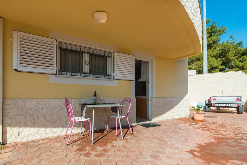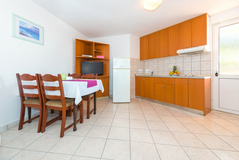 Ferienwohnung 7 vom Typ 2+2 befindet sich im Untergeschoss und besteht aus einem Schlafzimmer, Wohnzimmer mit Schlafsofa für zwei Personen (160x200), Küche, Badezimmer und Terrasse.