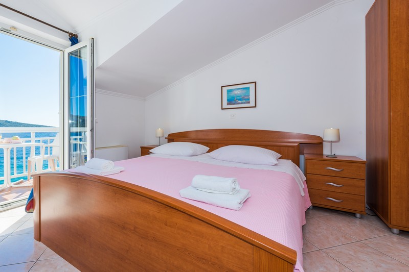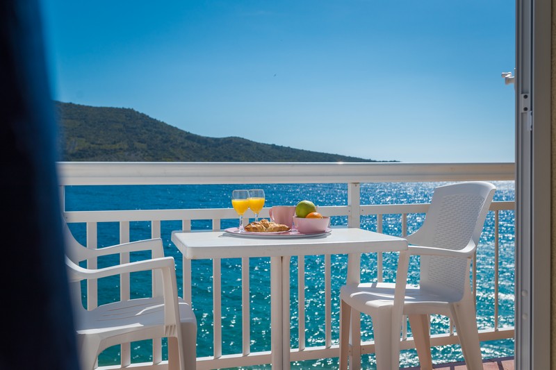 The 18 m² double room is located on the third floor. Features a private bathroom and a balcony with sea views. The room is equipped with a fridge, an electric kettle and suitable crockery.