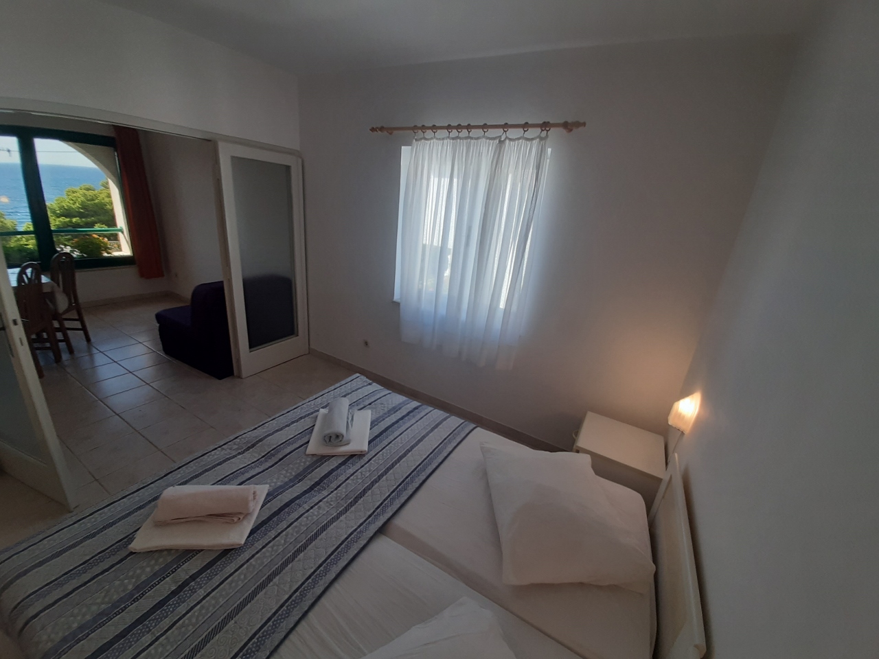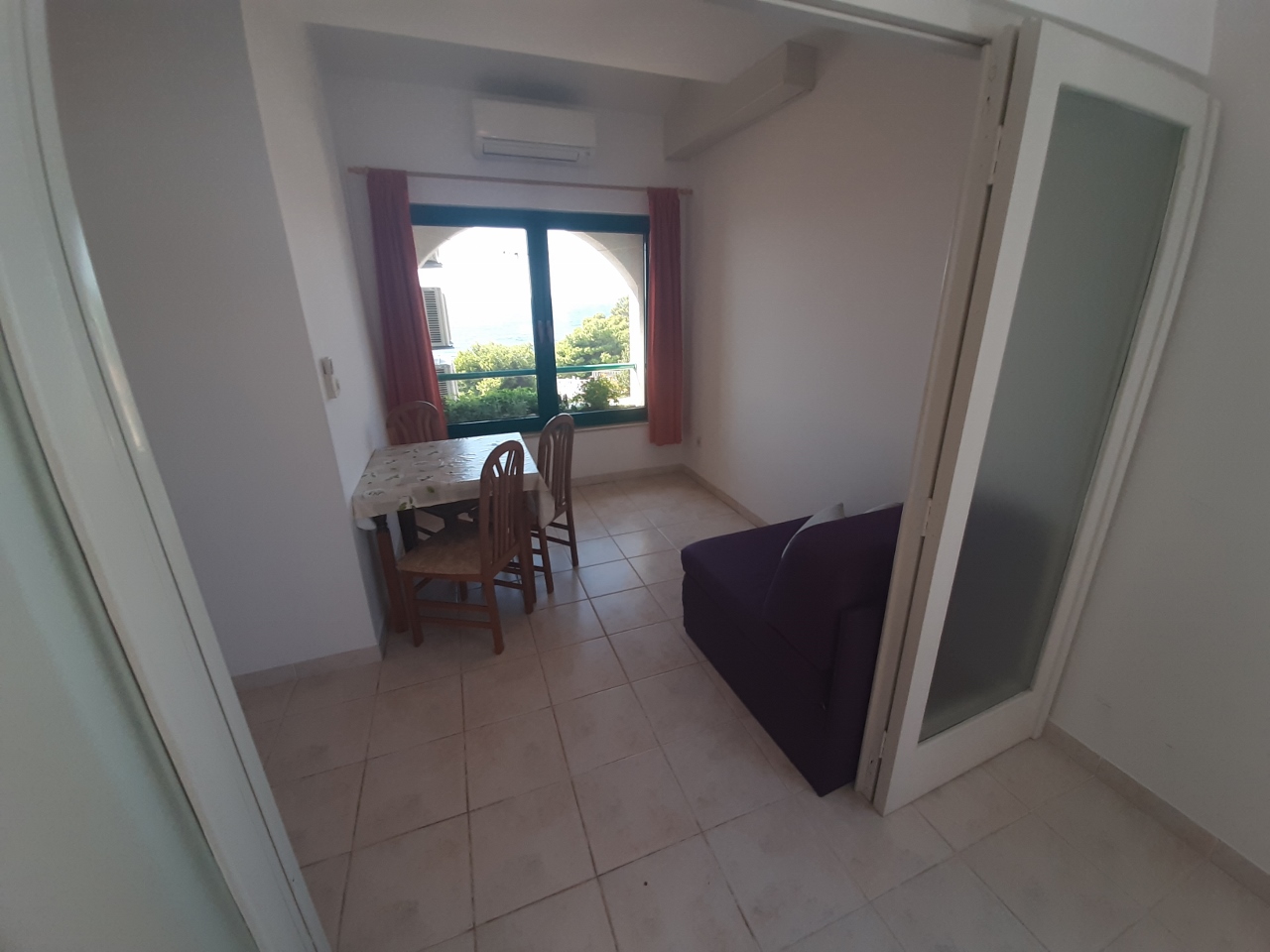 Separate bedroom with double bed, living room with sofa bed for two persons, kitchen, bathroom with toilet, air conditioning, TV, wi-fi, outdoor grill, first floor, parking space.