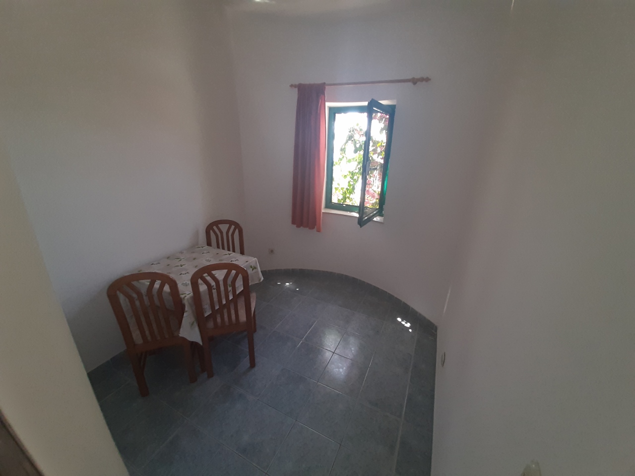 Separate bedroom with double bed, kitchen with dining area, bathroom with toilet, terrace, air conditioning, TV, wi-fi, outdoor grill, ground floor, parking space