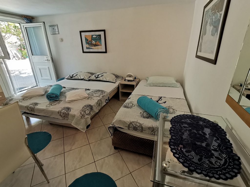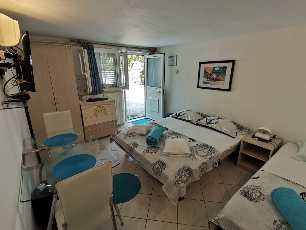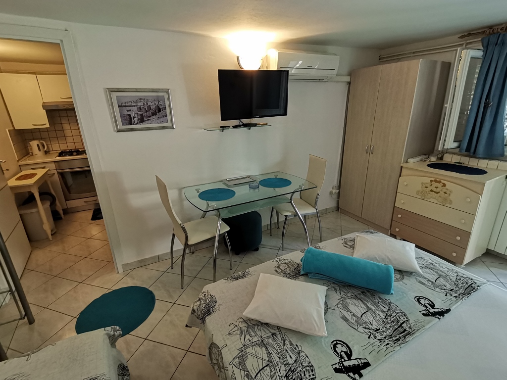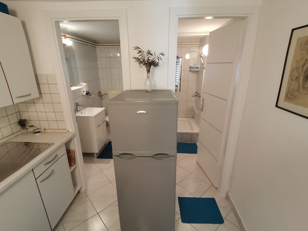 It has a small kitchen with stove, sink, bathroom with shower, balcony.