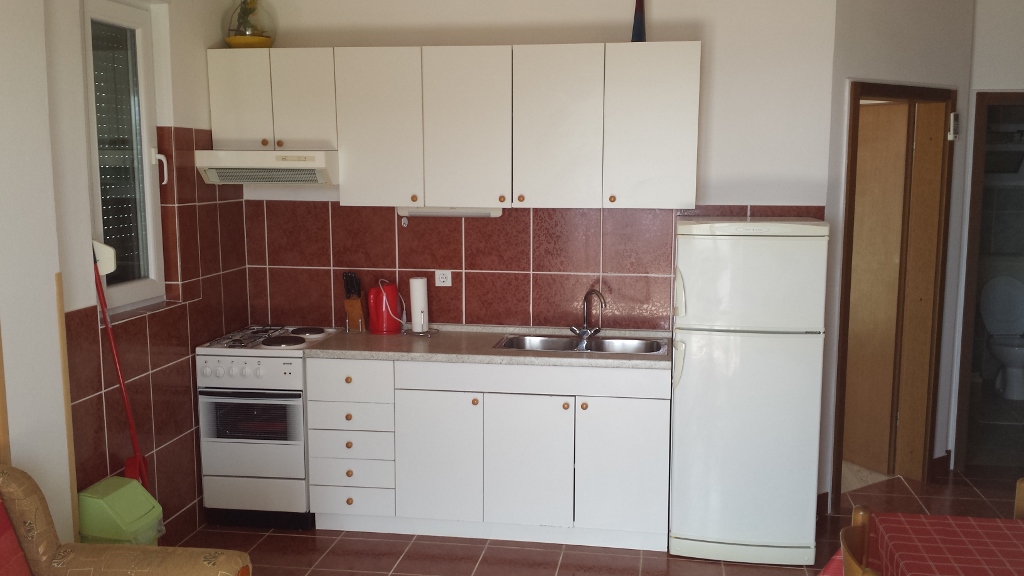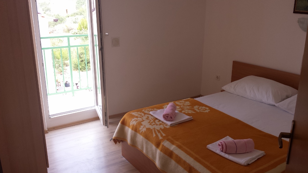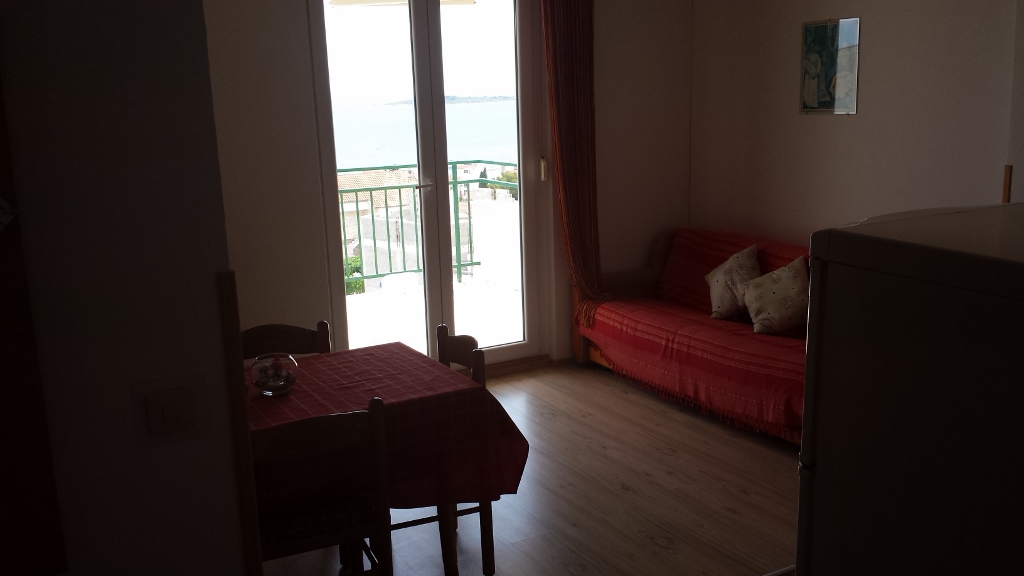 approx. 400 m from the sea and the beach and approx. 500 m from the center, balcony with sea view, kitchen, bedroom with brass bed, living room with sofa bed, WC-bathroom, TV, air conditioning, wi-fi, 2nd floor, parking