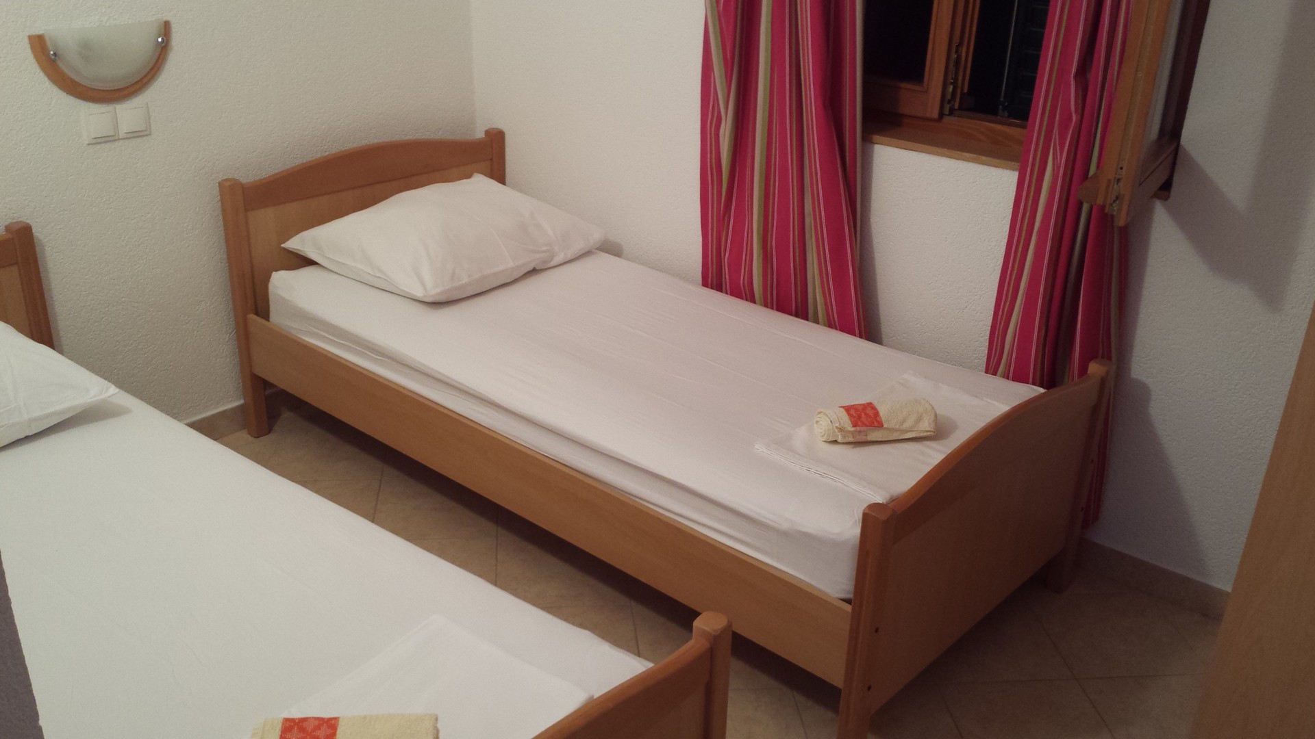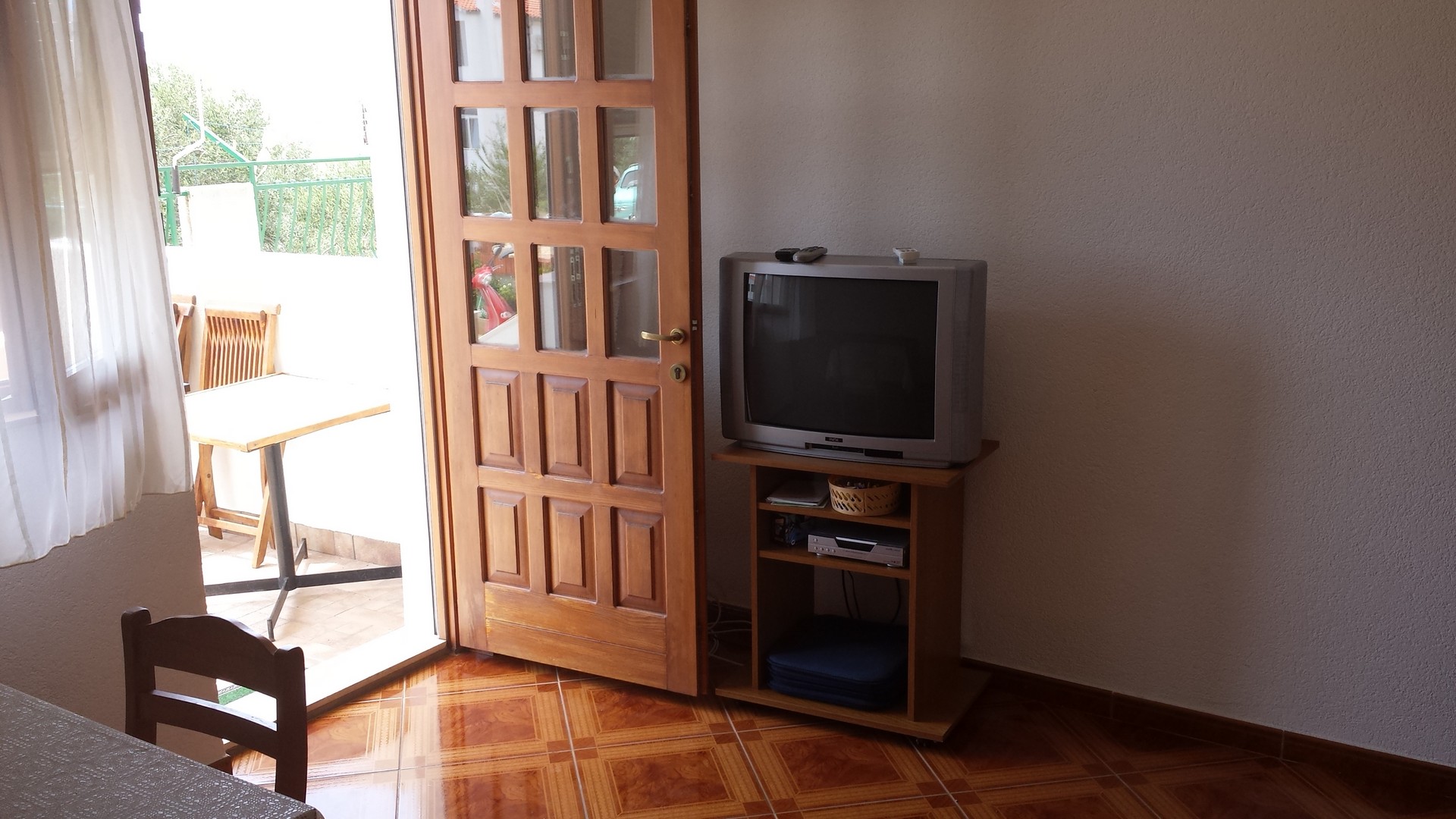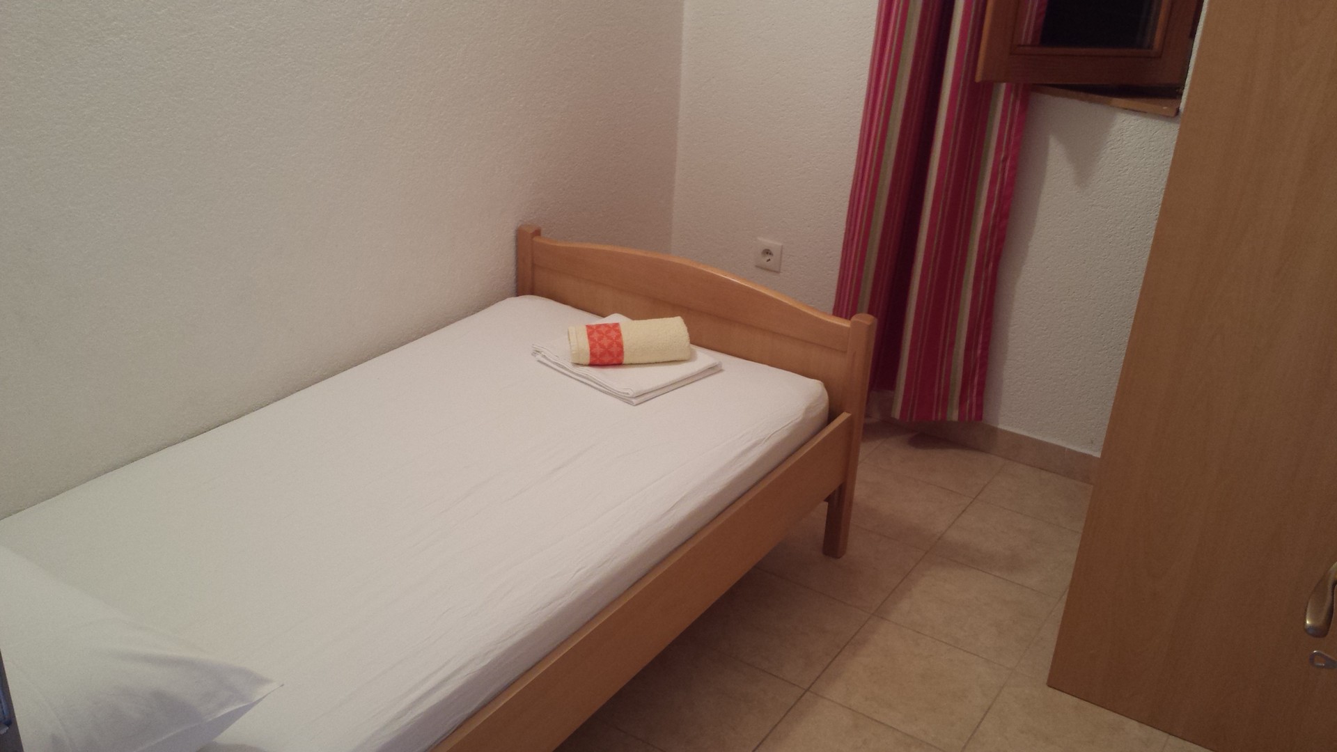 approx. 400 m from the sea and the beach and approx. 500 m from the center, balcony with small sea view, kitchen, 2 bedrooms, one with a single bed, WC-bathroom, TV, air conditioning, wi-fi, ground floor, parking