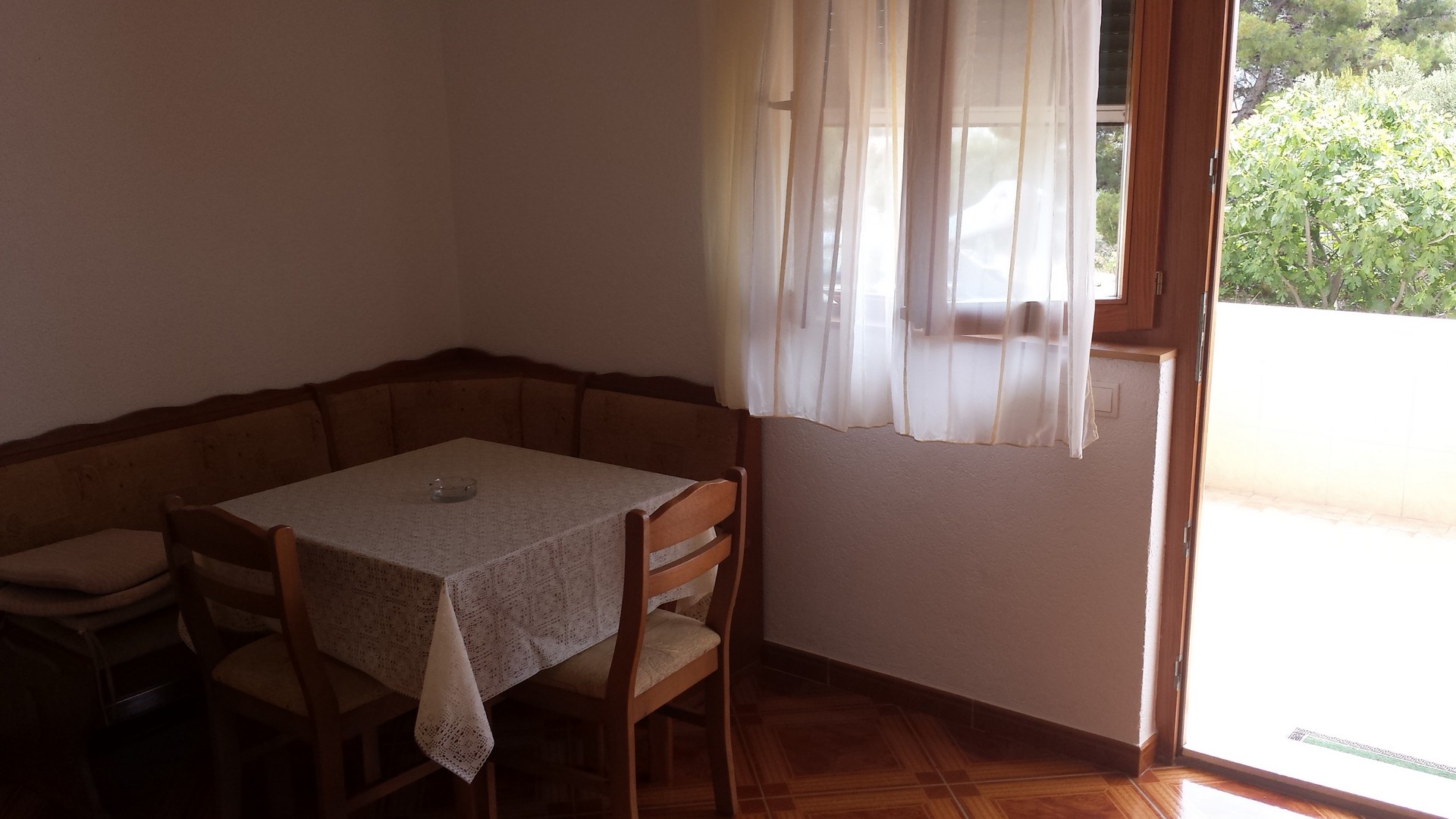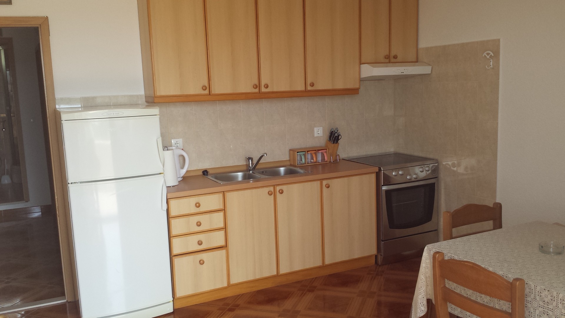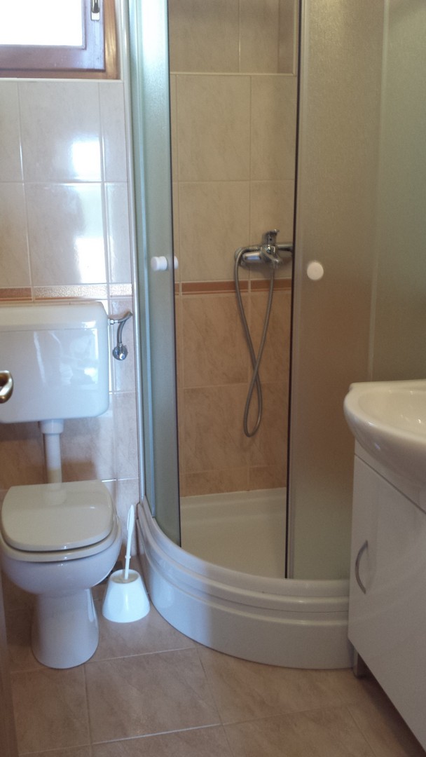 approx. 400 m from the sea and the beach and approx. 500 m from the center, balcony with small sea view, kitchen, 2 bedrooms, one with a single bed, WC-bathroom, TV, air conditioning, wi-fi, ground floor, parking