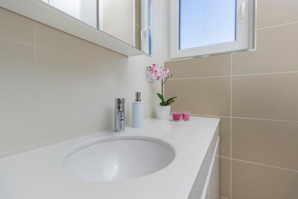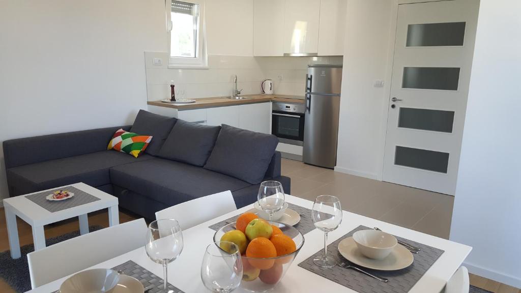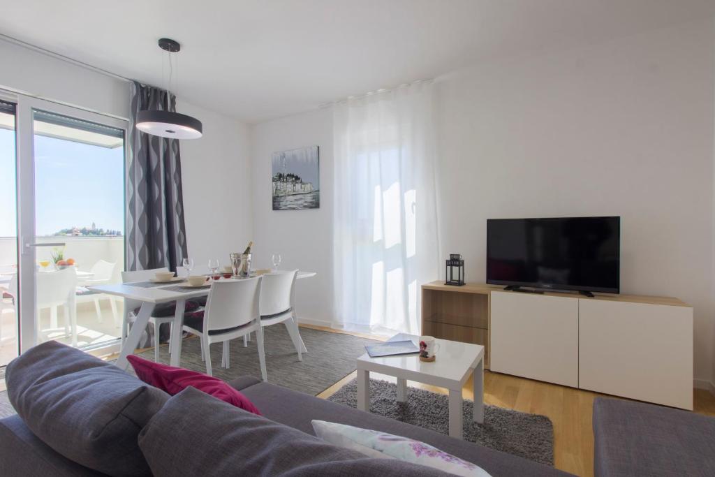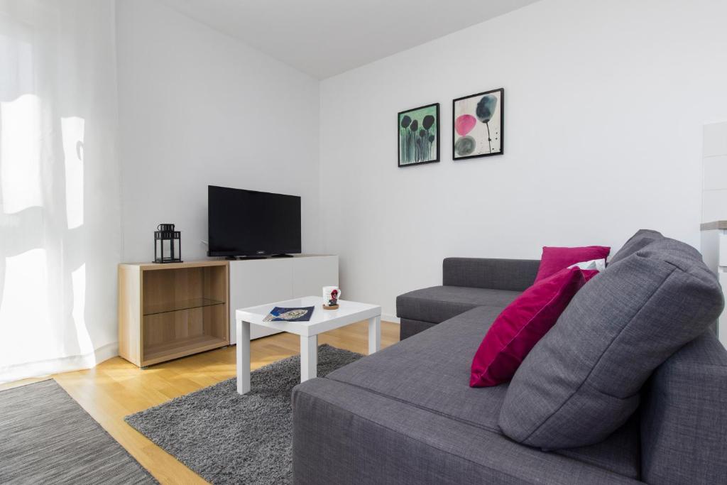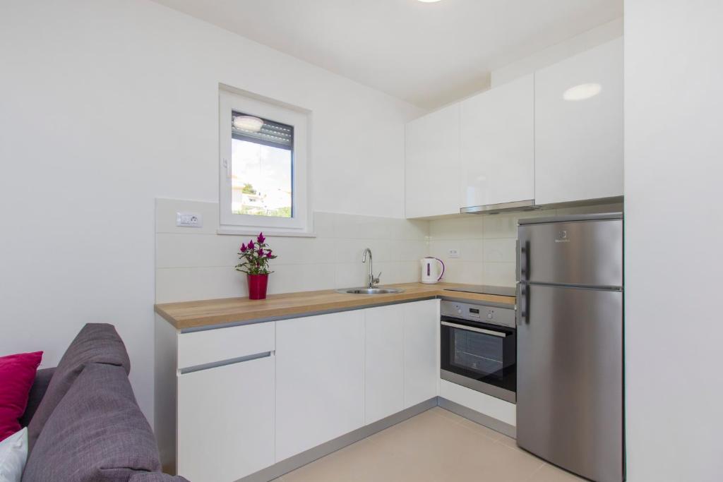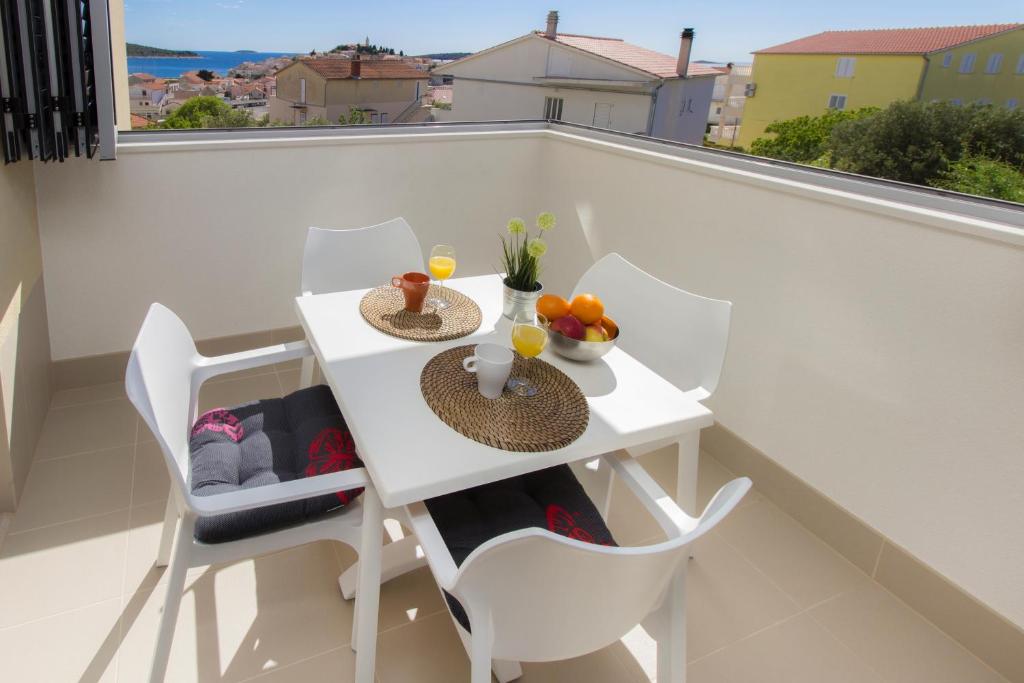 Cet appartement au premier étage dispose d'un balcon avec vue sur la mer et la ville. Il comprend un salon avec un canapé-lit et une cuisine avec un coin repas. La salle de bains privative est pourvue d'une baignoire et d'un lave-linge. La superficie de l'appartement est d'environ 46 m2.