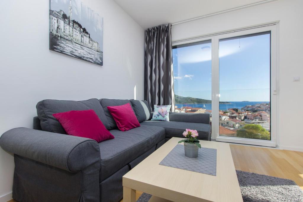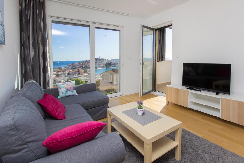 Situé au 2ème étage, cet appartement meublé de façon moderne dispose d'une terrasse spacieuse avec vue sur la mer et la ville de Primosten. Chaque chambre dispose de sa propre climatisation. Il comprend une télévision à écran plat, une cuisine avec coin repas et une salle de bains privative avec douche. Un lave-linge est également inclus.