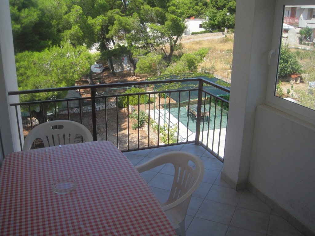 Deux chambres séparées avec lits doubles, cuisine sur la terrasse extérieure, salle de bains avec WC, balcon, air conditionné, TV, Wi-Fi, barbecue, deuxième étage, parking
