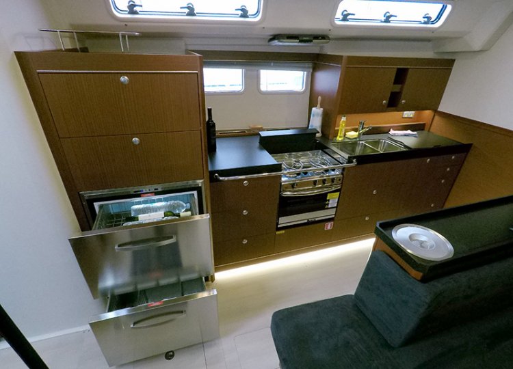 Jednostavan za plovidbu s kotrljajućim glavnim jedrom i samopokretnim flokom i može primiti ukupno 12 (11+1) osoba u 5 kabina + skiperska kabina.