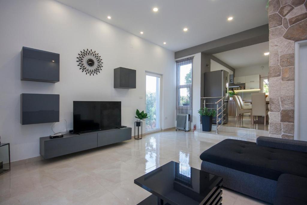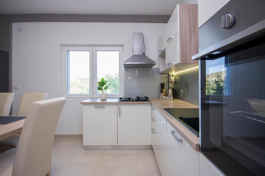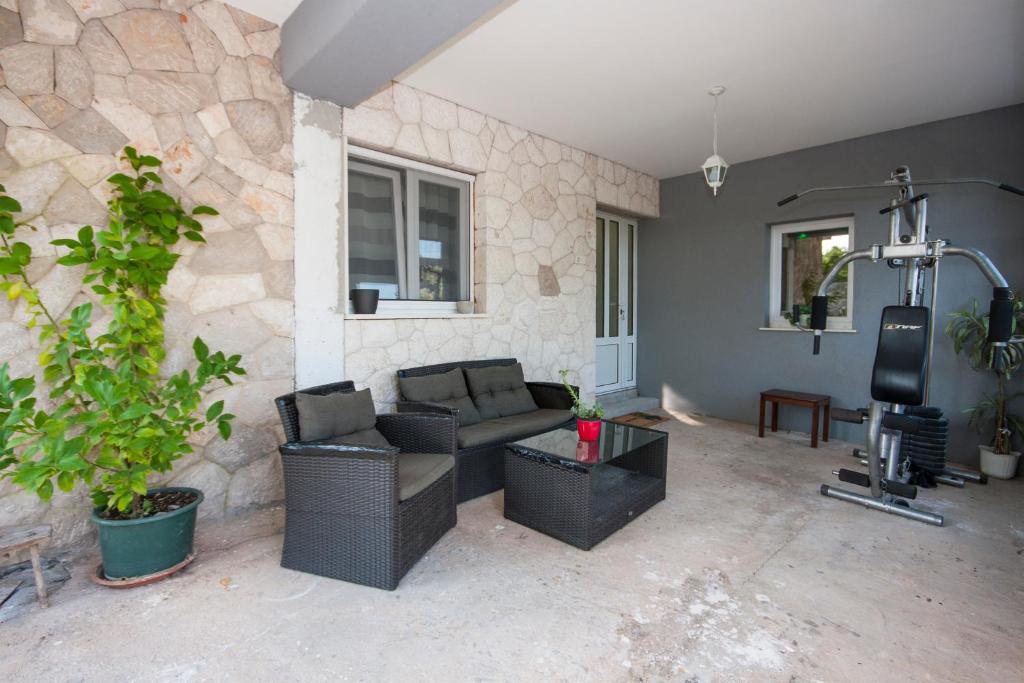 Apartman površine oko 100 m2 se sastoji od tri spavaće sobe sa bračnim ležajem, dnevni boravak sa kaučem na razvlačenje, kuhinja sa blagavaonicom, 2Xkupaonica sa tuš kadom, prostrana terasa, klima, TV, WiFi, parkirno mjesto. Idealno za osobe koje žele odmor daleko od buke i gužve, a blizu Primoštena.