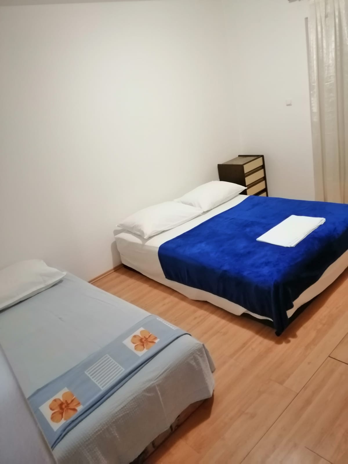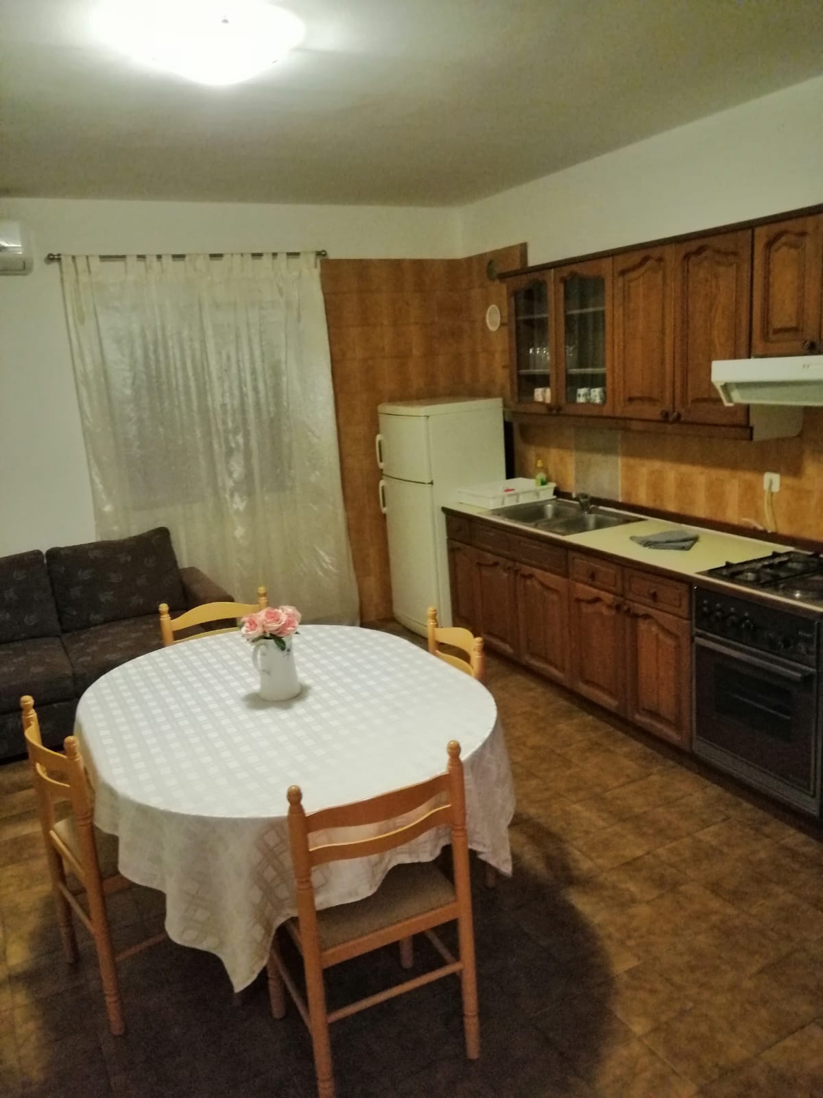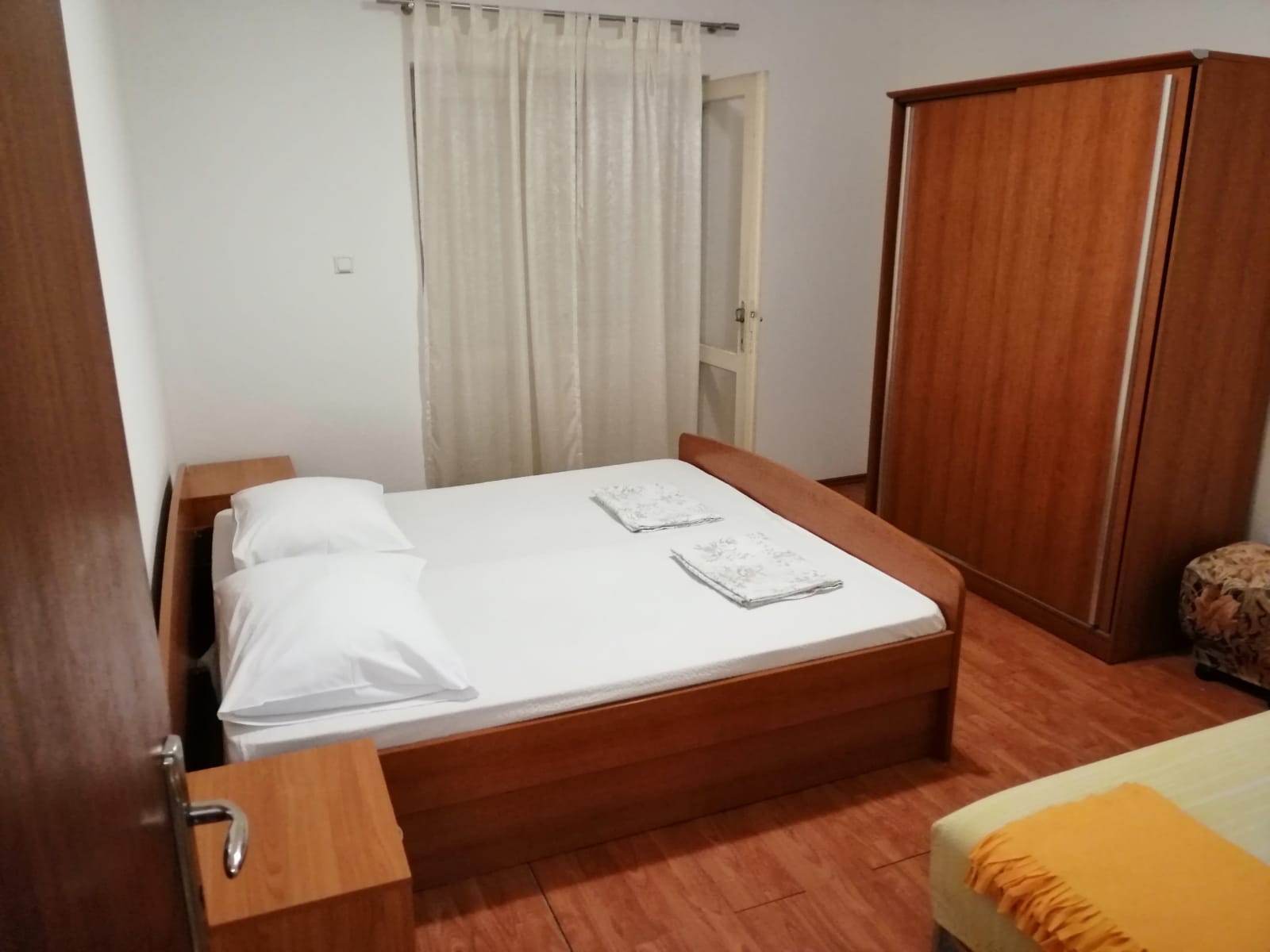 Apartman veličine 100m², četiri spavaće sobe s bračnim krevitima od kojih tri imaju još dodatni krevet za jednu osobu, kuhinja, dnenvni boravak s kaučem na rasklapanje, dvije kupaonice s WC-om, balkon, perilica rublja, klima uređaj, Sat-TV, wi-fi, parkirno mjesto