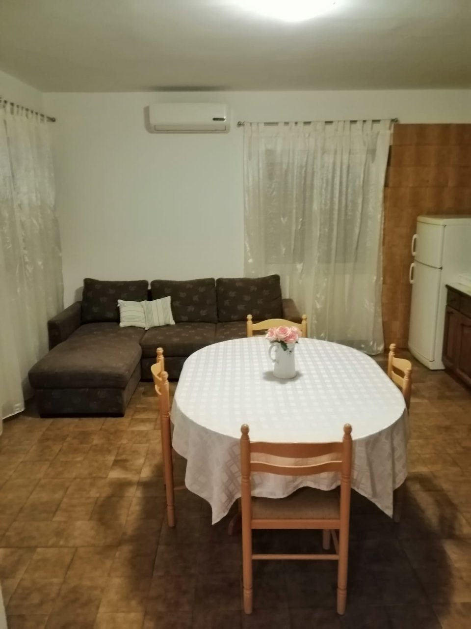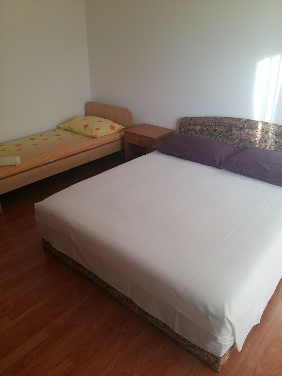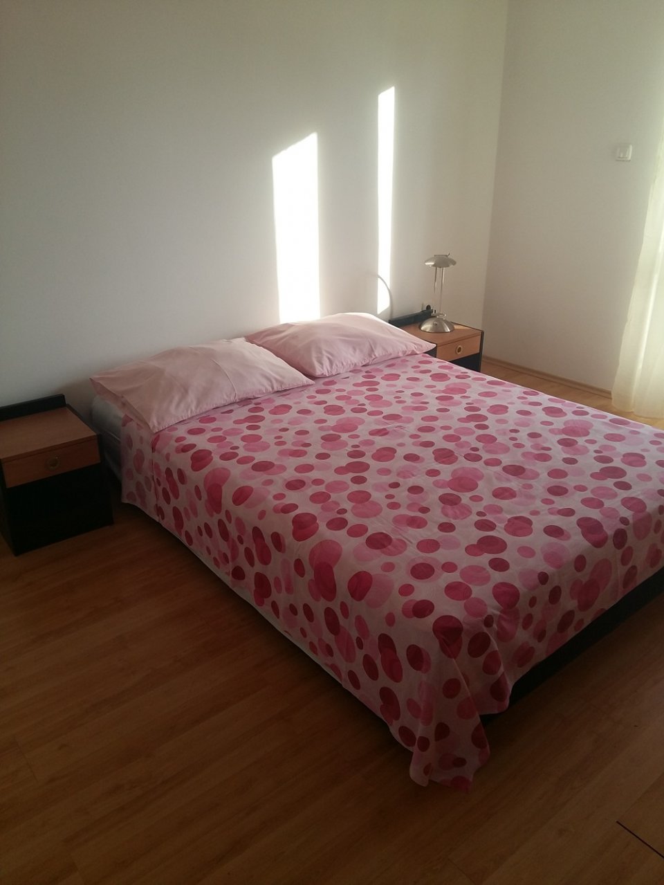 Apartman veličine 100m², četiri spavaće sobe s bračnim krevitima od kojih tri imaju još dodatni krevet za jednu osobu, kuhinja, dnenvni boravak s kaučem na rasklapanje, dvije kupaonice s WC-om, balkon, perilica rublja, klima uređaj, Sat-TV, wi-fi, parkirno mjesto