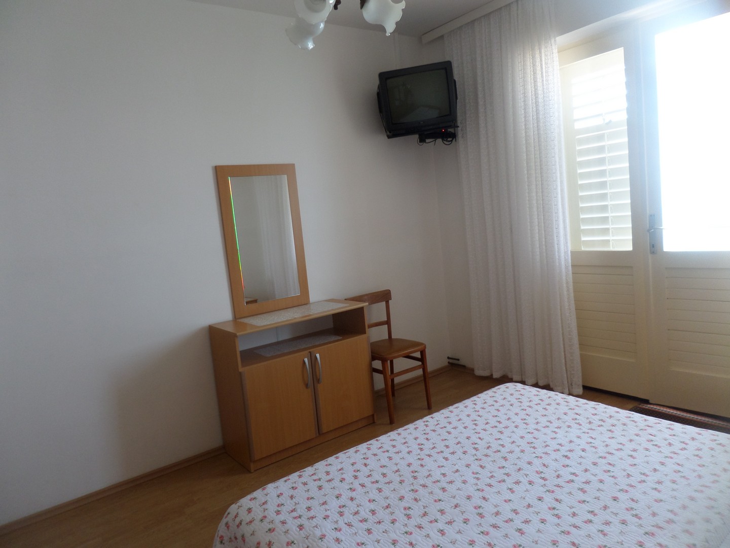 2 sobe sa bračnim krevetom, dodatni ležaj za dvije osobe u dnevnom boravku, WC-kupatilo, SAT-TV, kuhinja - dnevni boravak, 2 balkona sa pogledom na more i Primošten, parking, 10 m od mora i plaže, cca 80 m2, 1. kat
