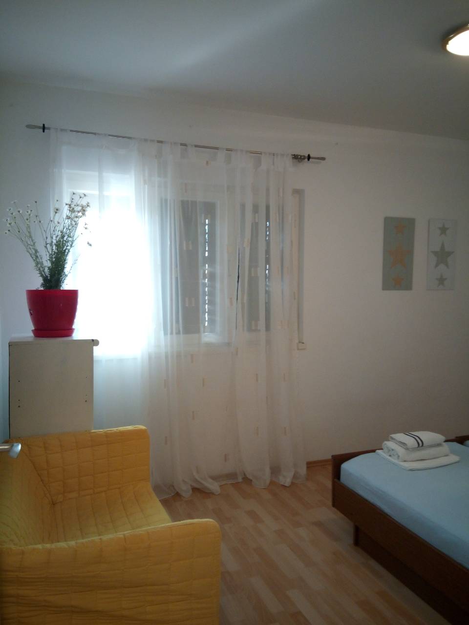 Apartman je udaljen cca 200 m od mora i cca 300 m od centra Primoštena, dvije odvojene spavaće sobe s bračnim krevtima, kuhinja, dodatni ležaj u dnevnom boravku za 1 osobu, kupaonica s WC-om, balkon, klima, TV, Wi-Fi, parking
