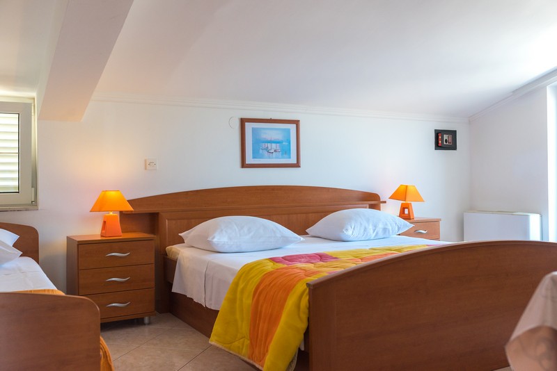 Studio apartman 12 je tip studija 2+1. Nalazi se na trećem katu, a sastoji se od bračnog kreveta i kreveta za jednu osobu, kuhinje, kupaonice i balkona s kojeg se vidi more. Kuhinja je opremljena posuđem za kuhanje i posluživanje.