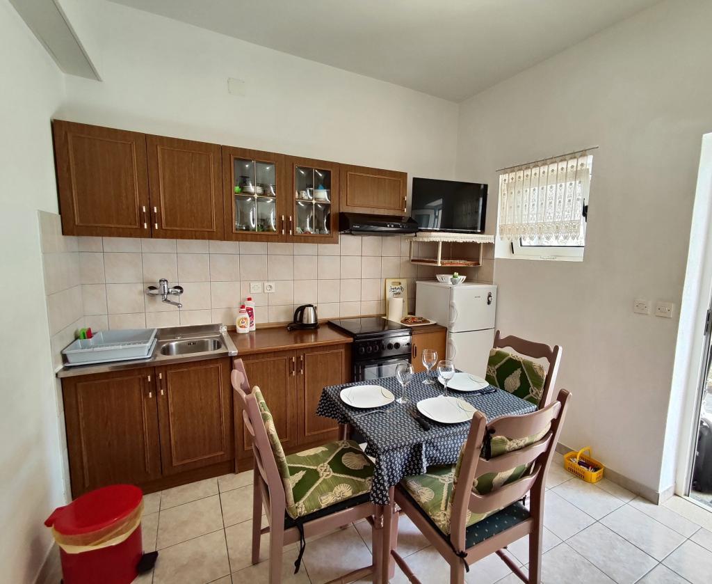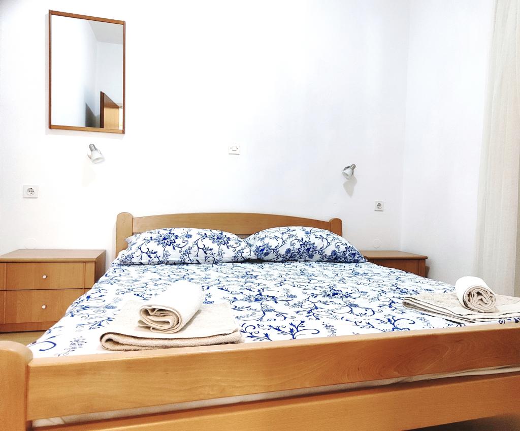 Apartman površine od 40 m2, soba s bračnim krevetom i krevetom za jednu osobu, kuhinja, kupaonica s wc-om, balkon, klima uređaj, TV, parkirno mjesto, 10 metera od plaže