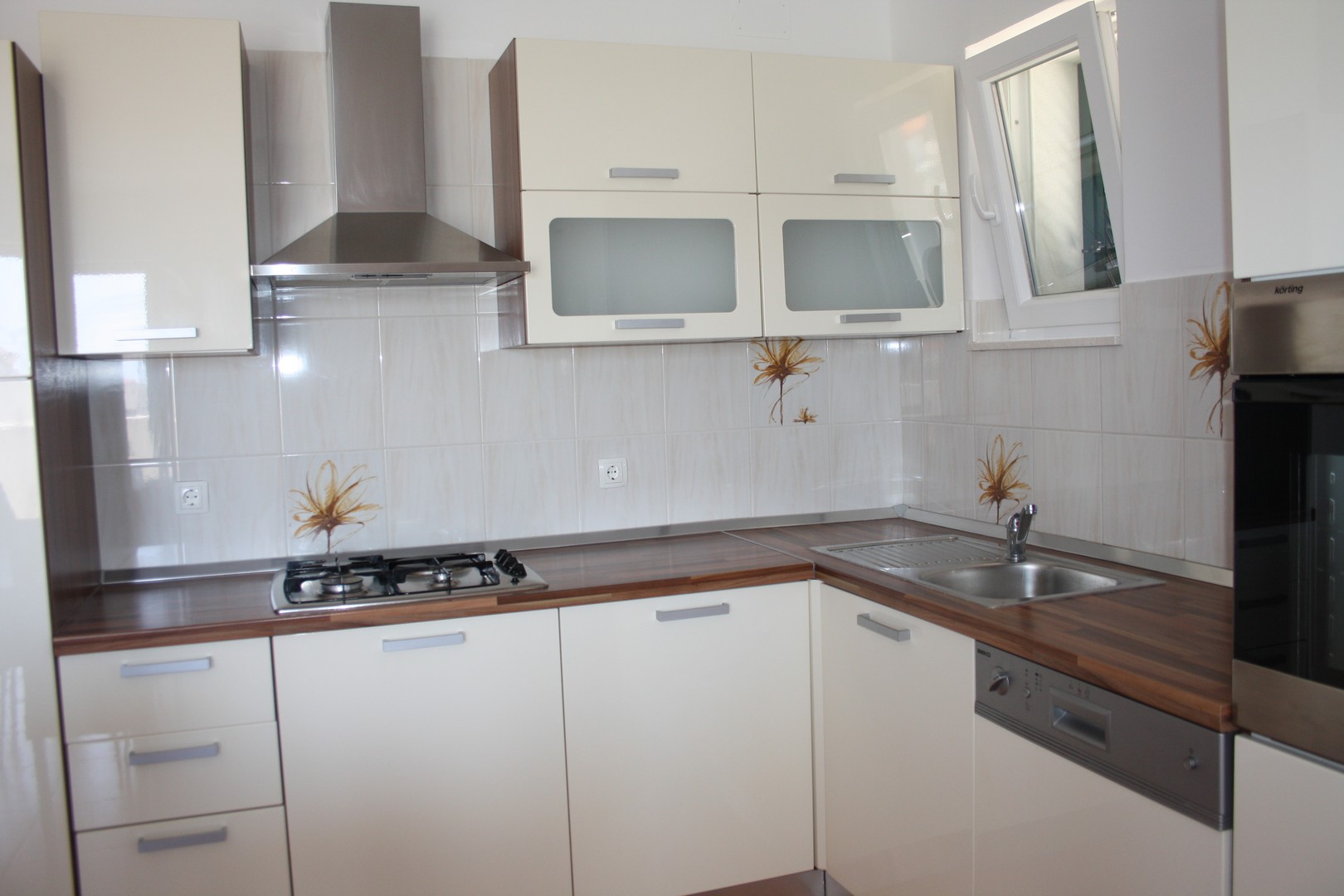 dvije spavaće sobe s bračnim krevetima, kuhinja s dnevnim boravkom, pomočni ležaj za dvije osobe, kupatilo s wc-om, balkon, klima, Tv, Wi-Fi, parkirno mjesto, udaljeno 250m od plaže i 400m od centra