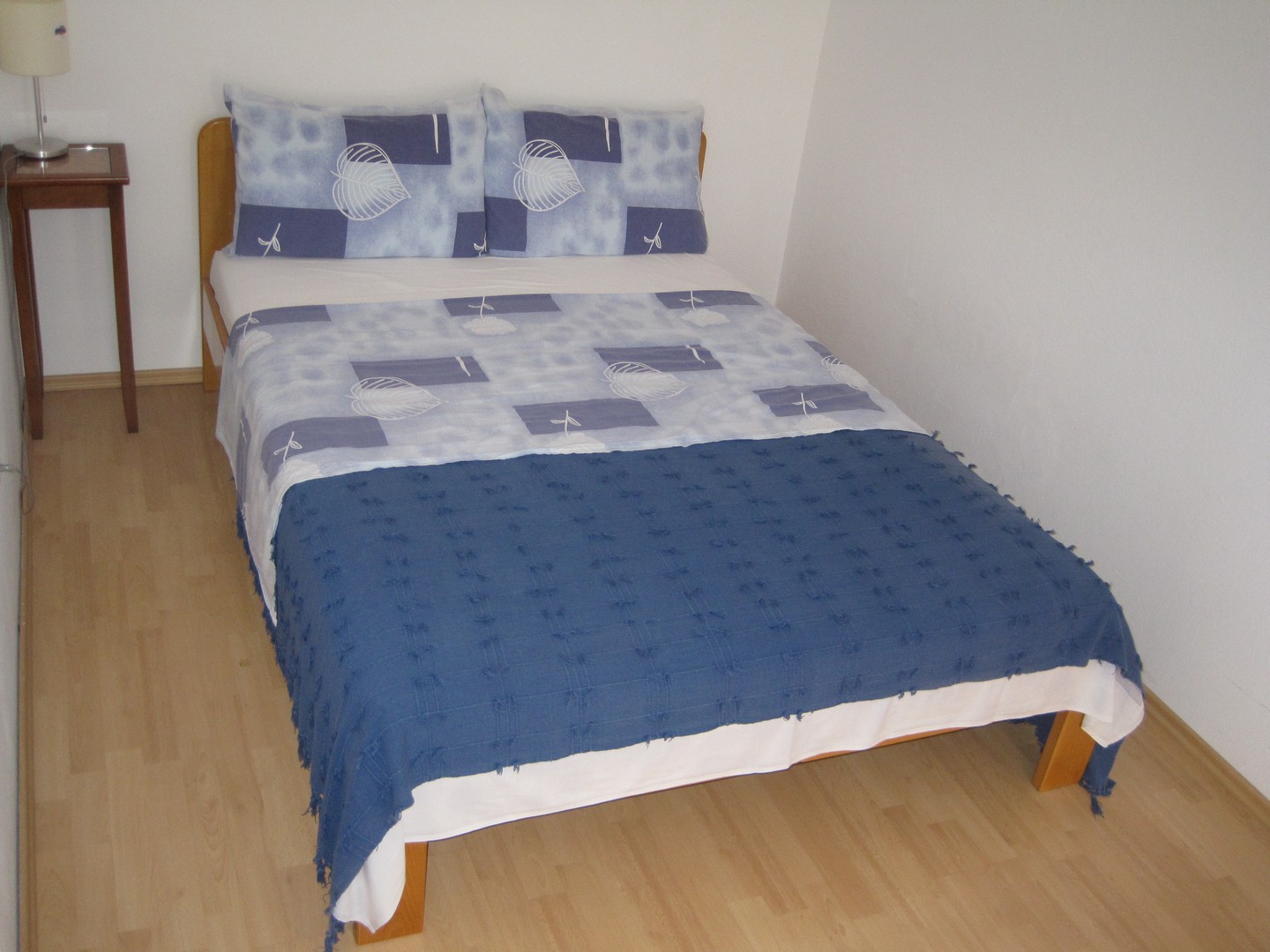 TV, cca 400 m od mora i plaže i cca 400 m od centra, balkon sa malim pogledom na more, kuhinja, 2 odvojene sobe za 2 osobe svaka, klima, dodatni ležaj za jednu osobu,WC-kupatilo, prvi kat, parking