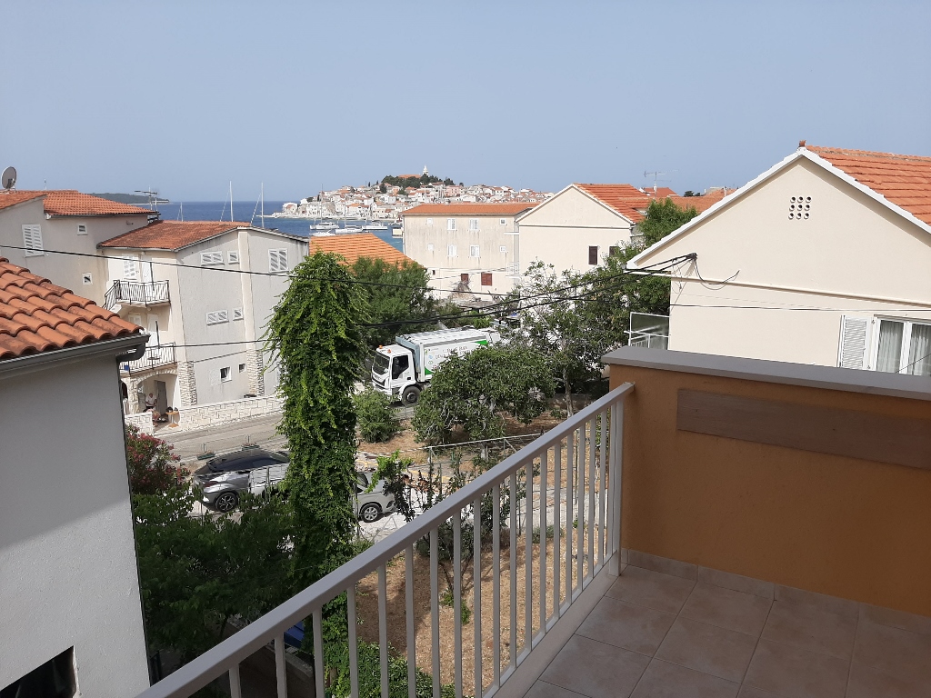 Balkon sa pogledom na more i na dio starog mjesta Primoštena.