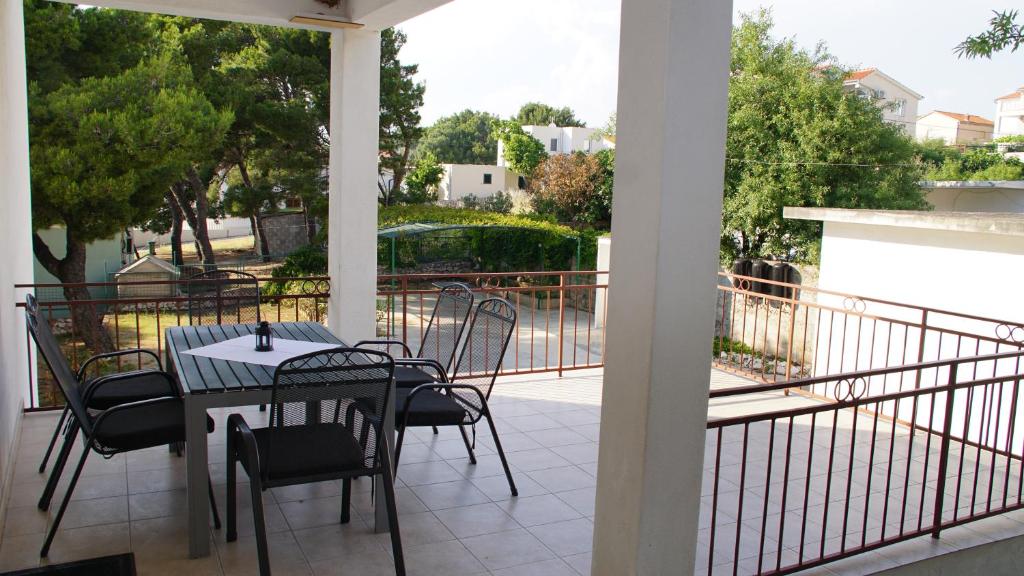 Tri odvojene spavaće sobe sa bračnim krevetima, kuhinja, kupaonica s WC-om, balkon, klima uređaj, TV, wi-fi, vanjski roštilj, prvi kat, parkirno mjesto.