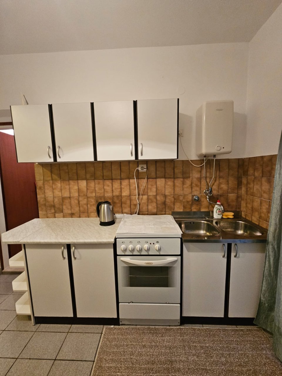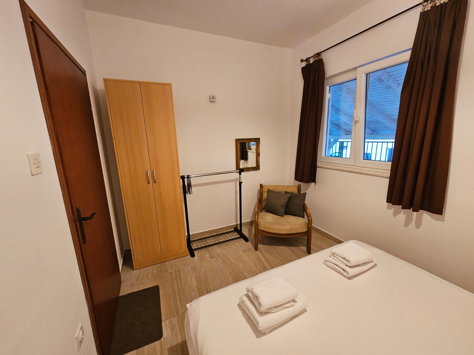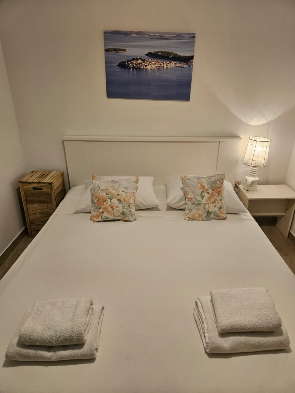 Appartamento con terrazza ca. 250 m dal mare e ca. 300 m dal centro di Primošten, due camere separate con letti a castello per 2 persone, cucina, bagno con wc e un bagno aggiuntivo, aria condizionata, TV satellitare, Wi-Fi, piano terra, parcheggio