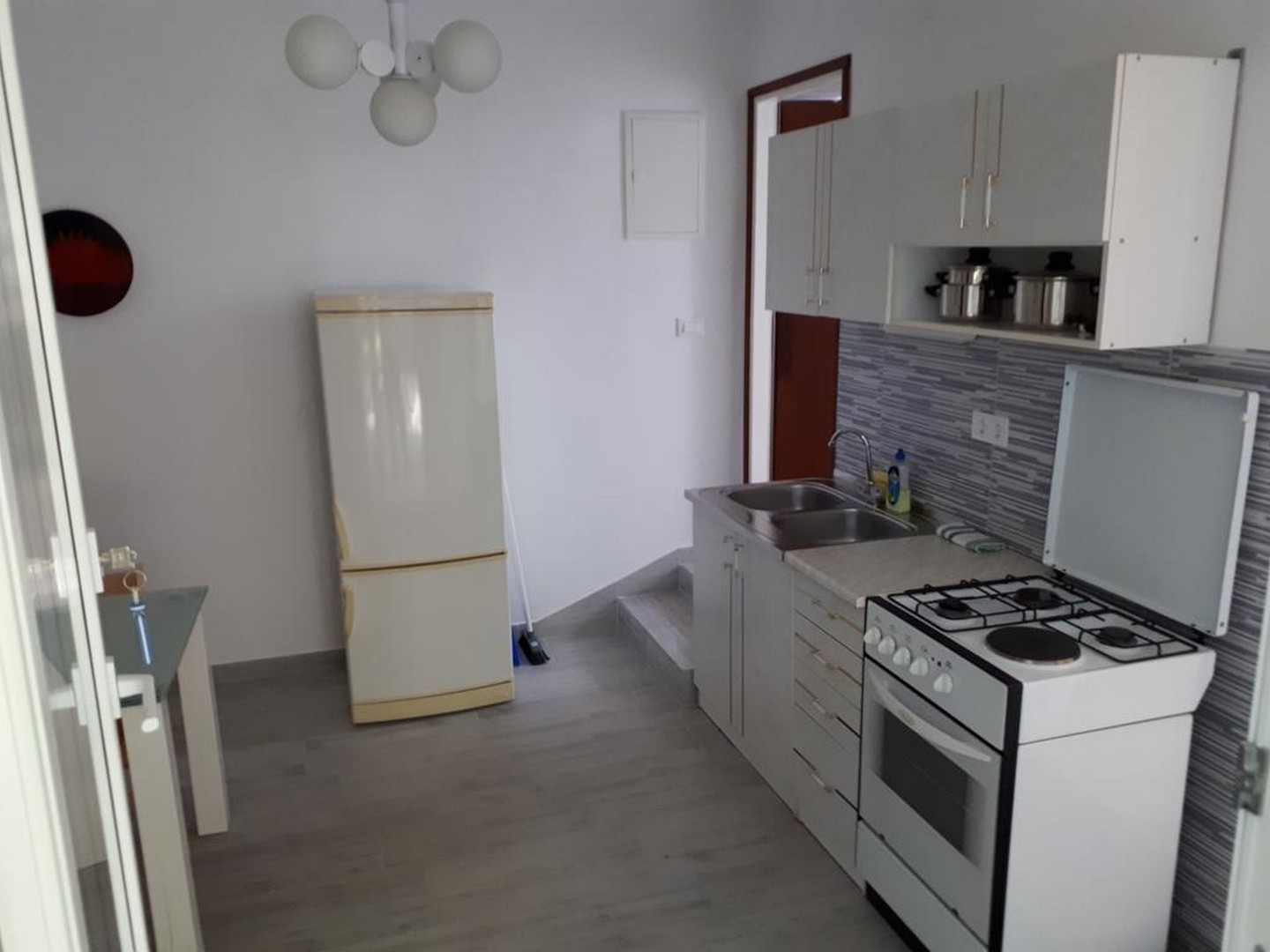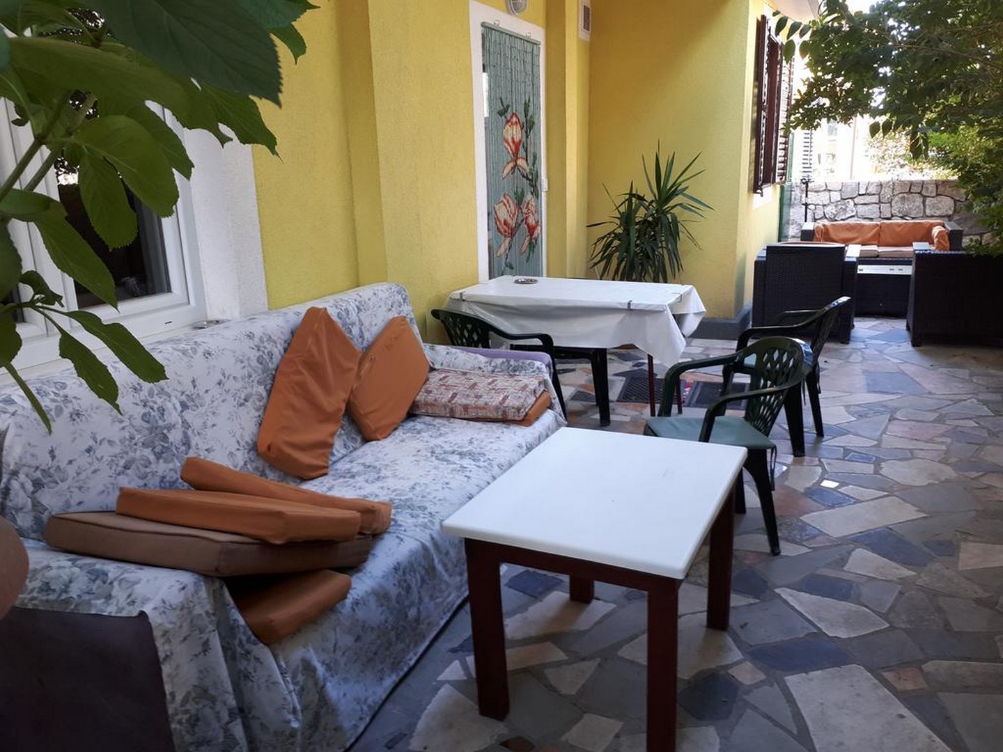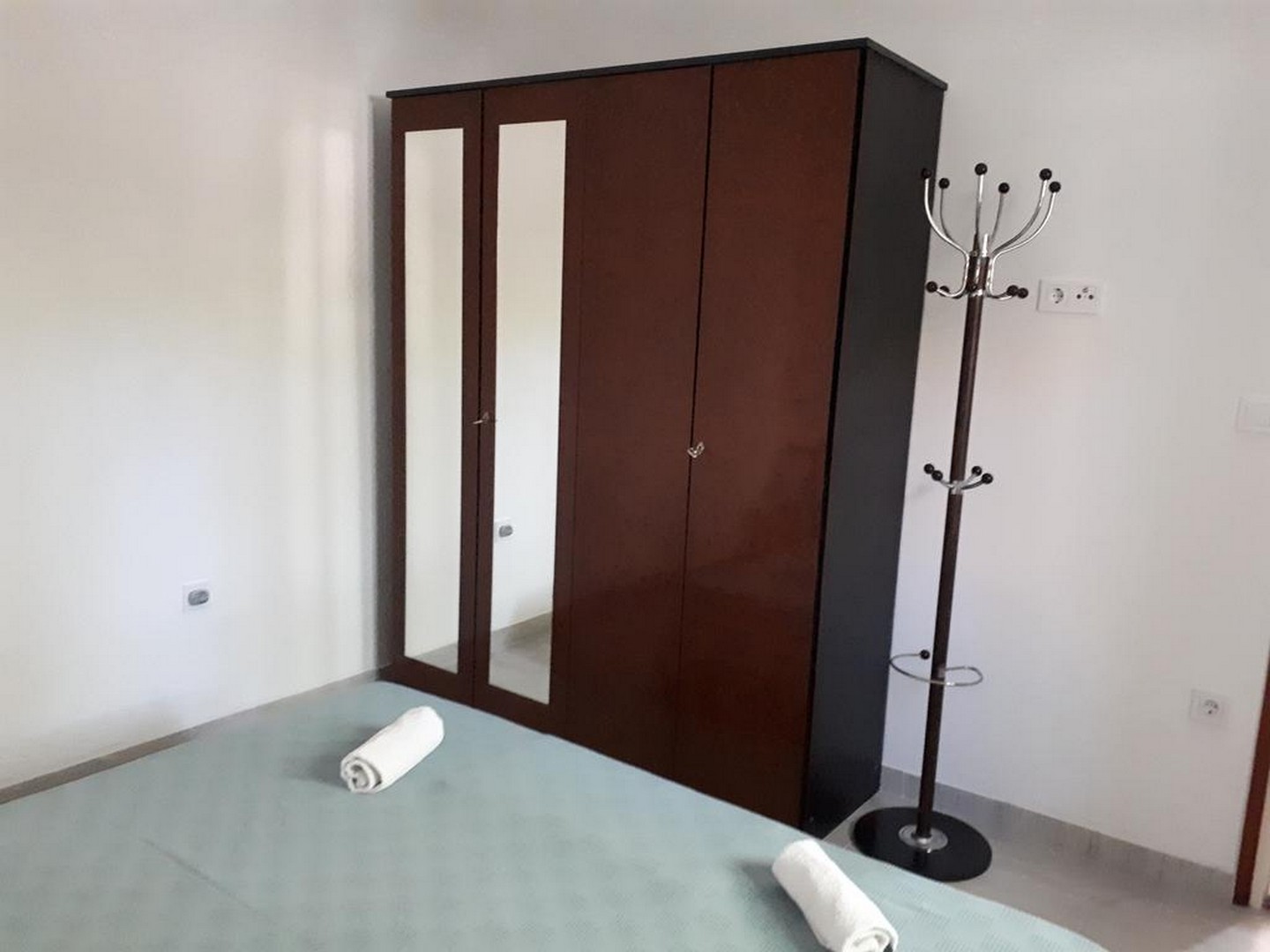 Appartamento con terrazza ca. 200 m dal mare e ca. 300 m dal centro di Primošten, due camere da letto con letti matrimoniali, cucina, bagno con wc, aria condizionata, TV satellitare, Wi-Fi, piano terra, parcheggio