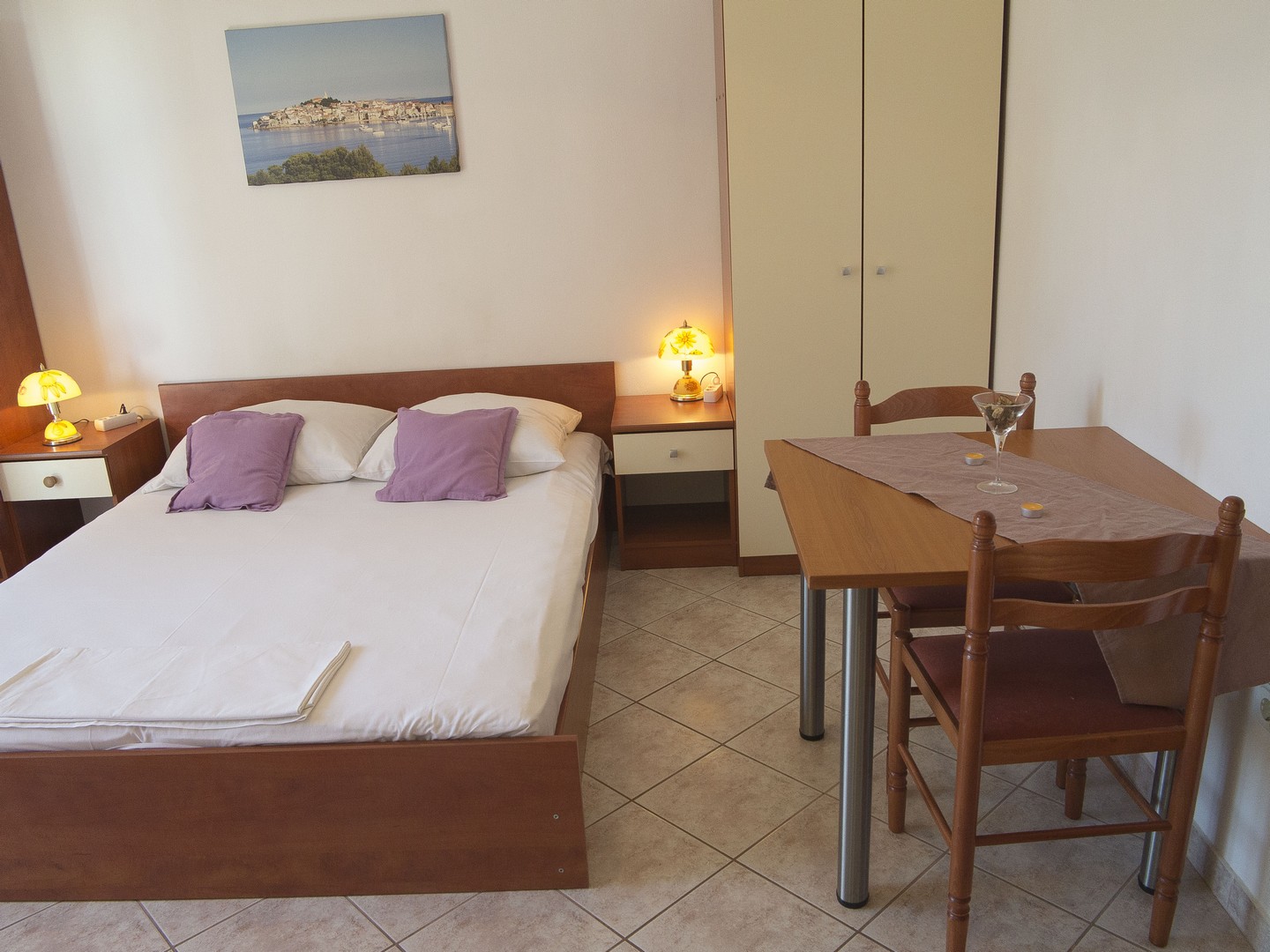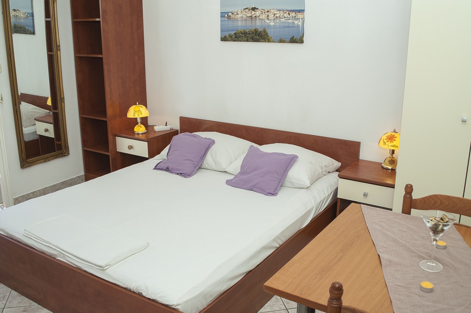 Monolocale di 25m² per due persone - ca. 250 metri dal mare e ca. 300 m dal centro di Primošten, camera, cucina, bagno con wc, balcone, aria condizionata, Sat-TV, Wi-Fi, parcheggio