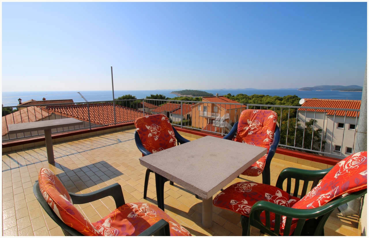Appartamento per 4 a 6 persone con una grande terrazza e una splendida vista sul mare e sulle isole circostanti.