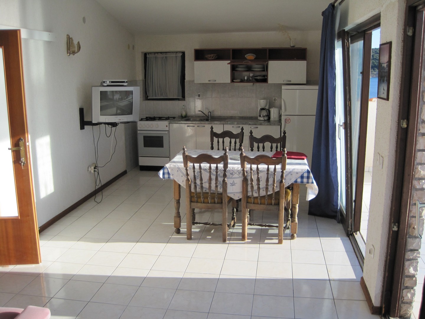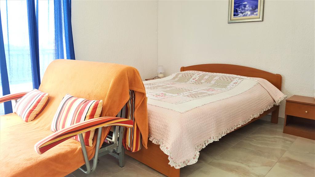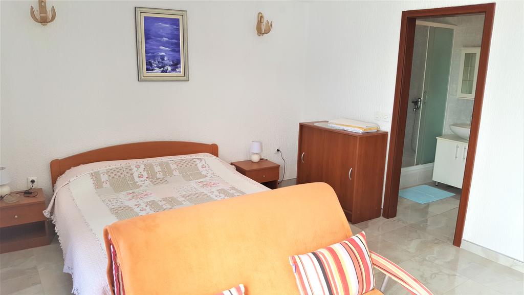 10 m od morza i plaży, duży taras z widokiem na morze i widokiem na Primošten, kuchnia, podwójne łóżko, dodatkowe łóżko dla dziecka , WC-łazienka, klimatyzacja, SAT-TV, trzecie piętro, parking