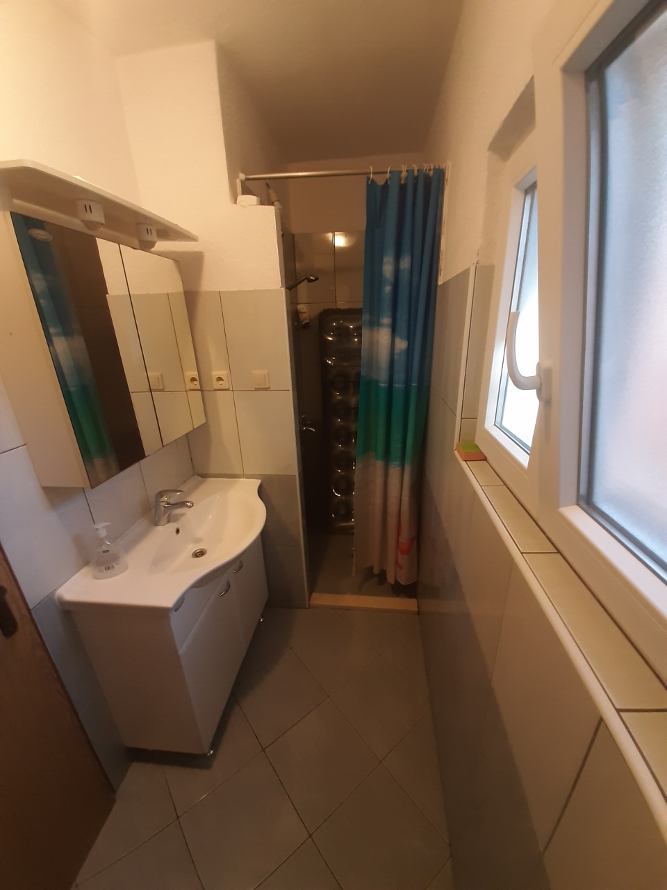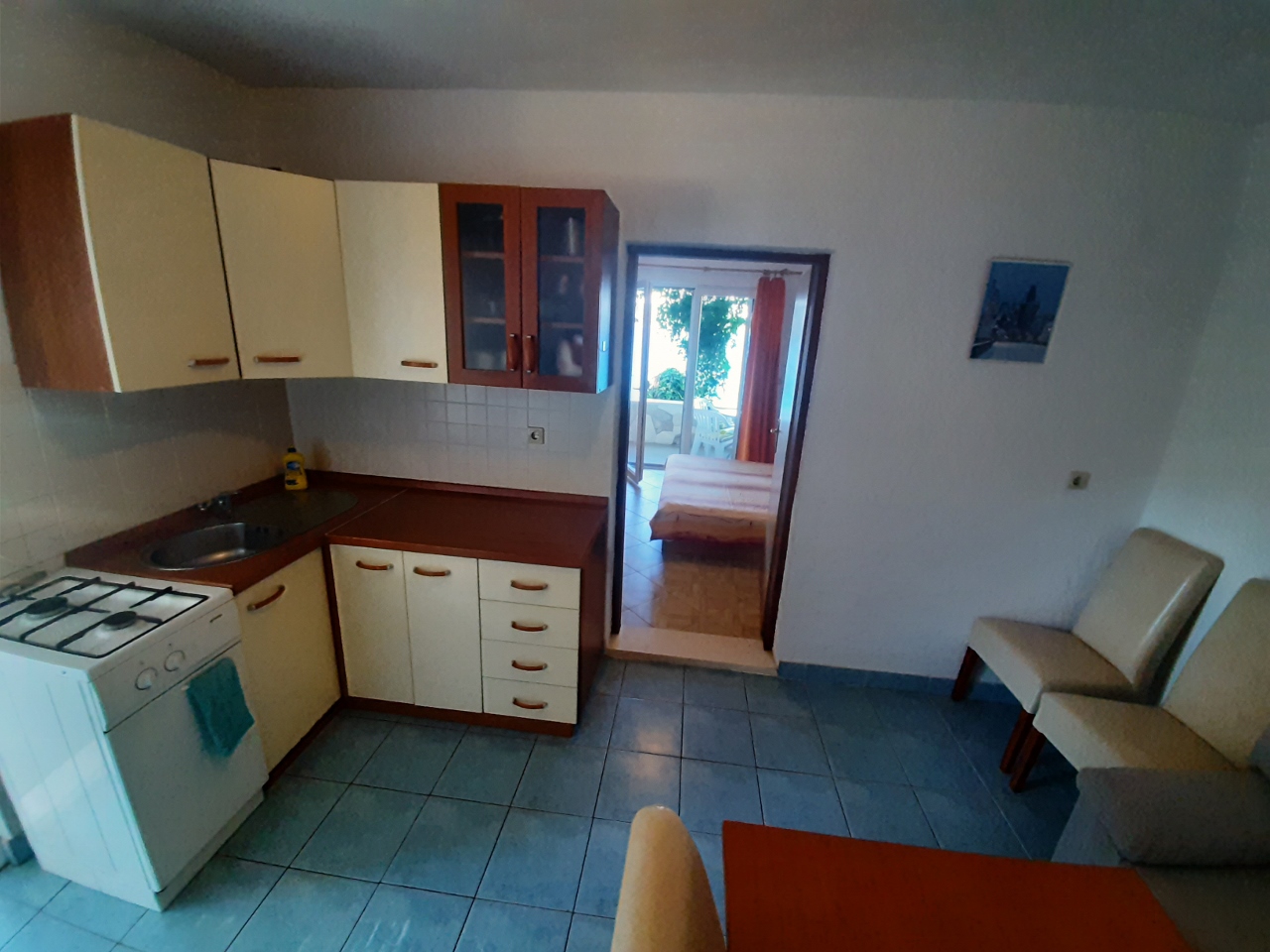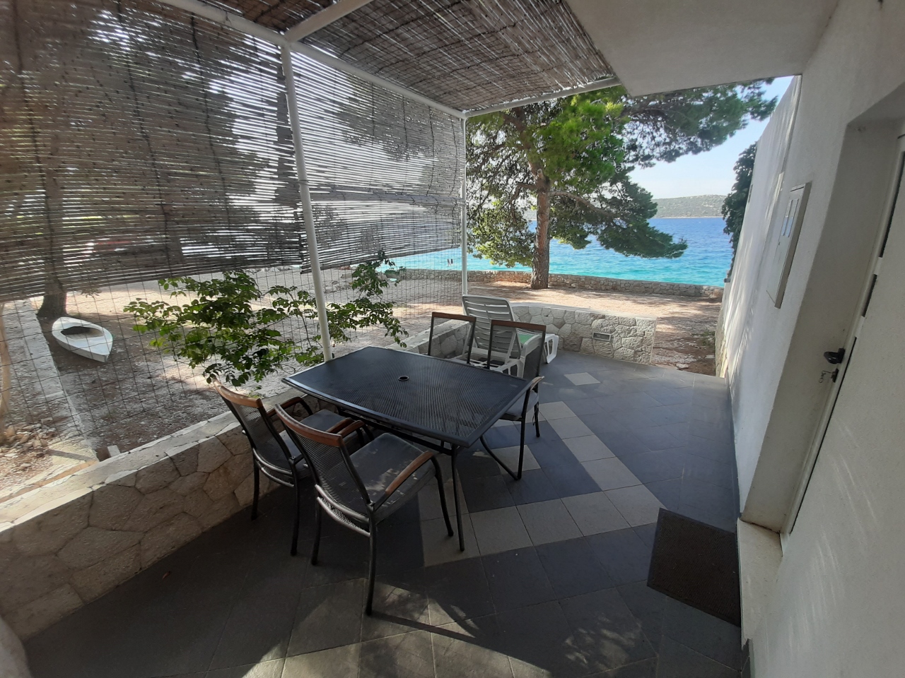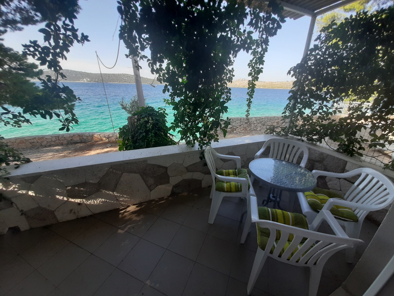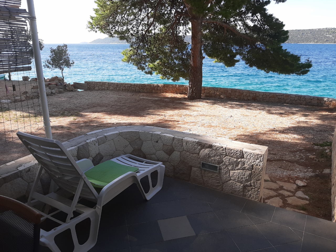 Pierwszy rząd do morza, otoczony lasem sosnowym w kamp Tomas, Sparadici.