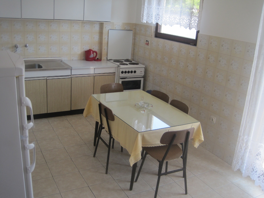 Dwie sypialnie, jedna z podwójnym łóżkiem i druga z dwoma pojedynczymi łóżkami, kuchnia z jadalnią i salonem z rozkładaną sofą, łazienka z WC, balkon, klimatyzacja, TV, WiFi, grill na świeżym powietrzu, pierwsze piętro, parking