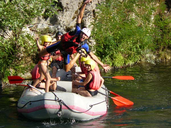 - kurzes Training zum Verhalten auf dem Fluss und Einführung in die obligatorische Ausrüstung (Boot, Paddel, Helm, Schwimmweste ...).
