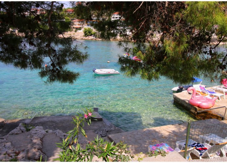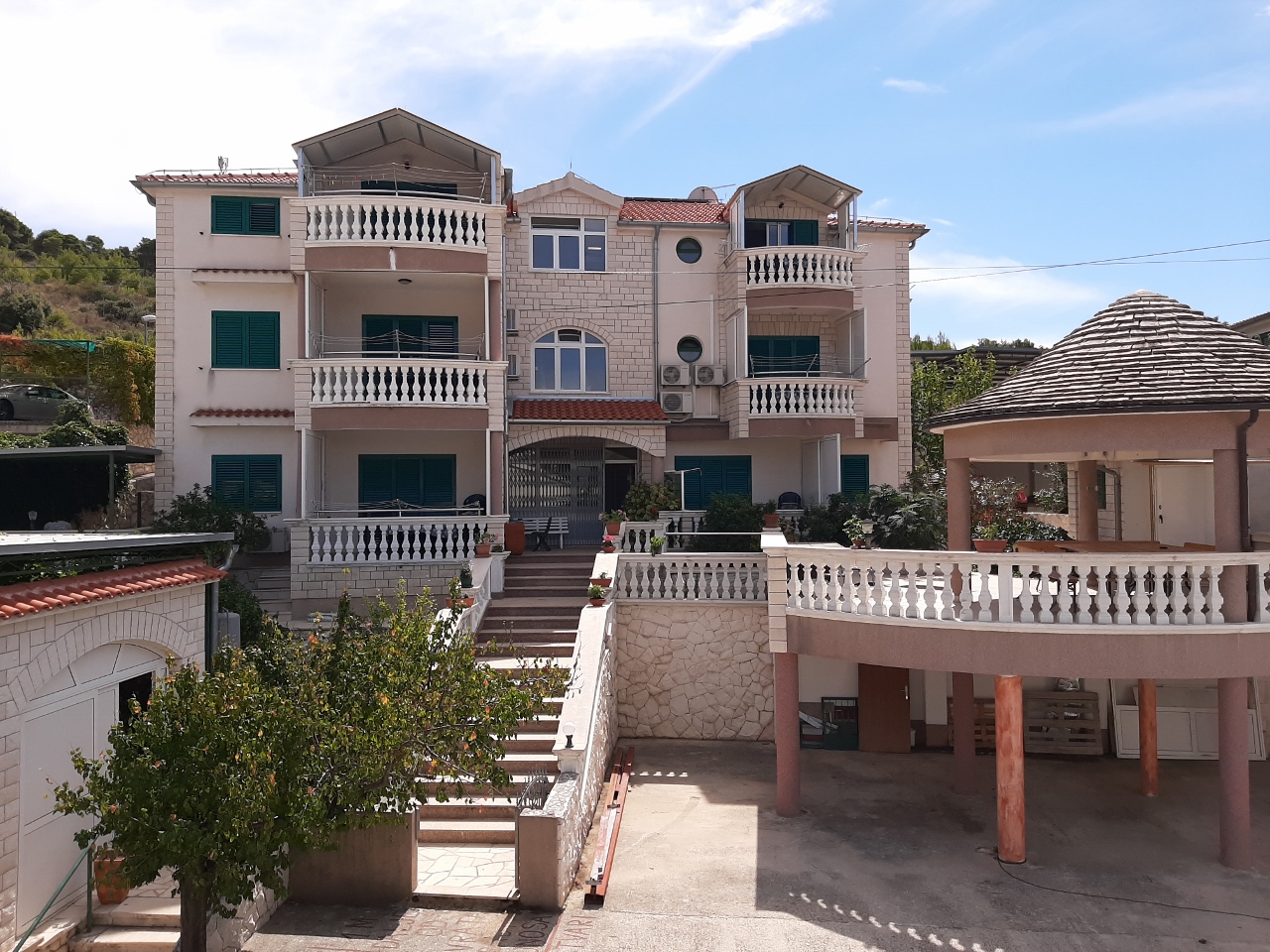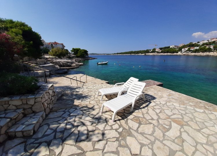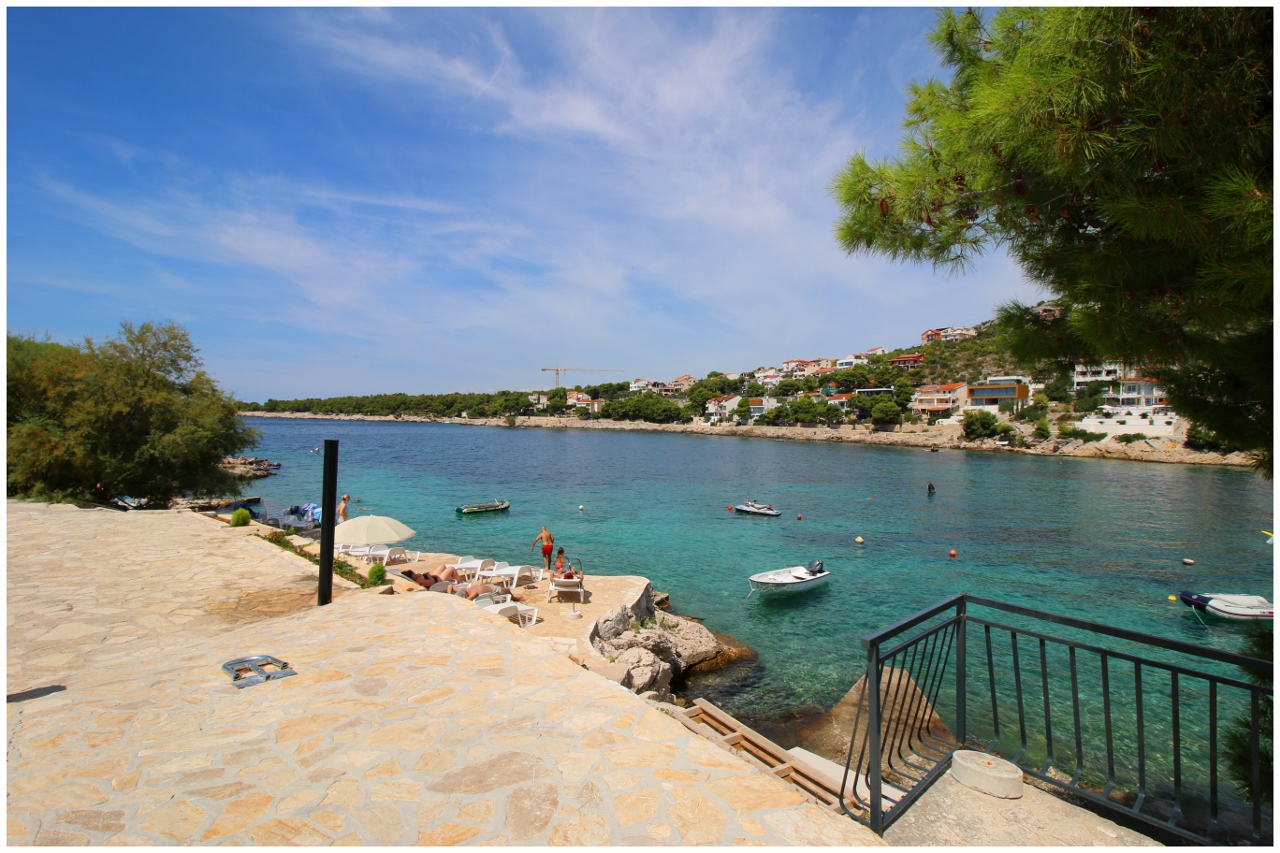 Apartments im Dorf Bilo, ca. 5 km von Primosten entfernt. Zweite Häuserreihe vom Meer entfernt, ca. 30 m vom Strand entfernt.