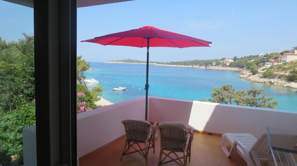 Balkon mit wunderschönem Meerblick. Am Strand.