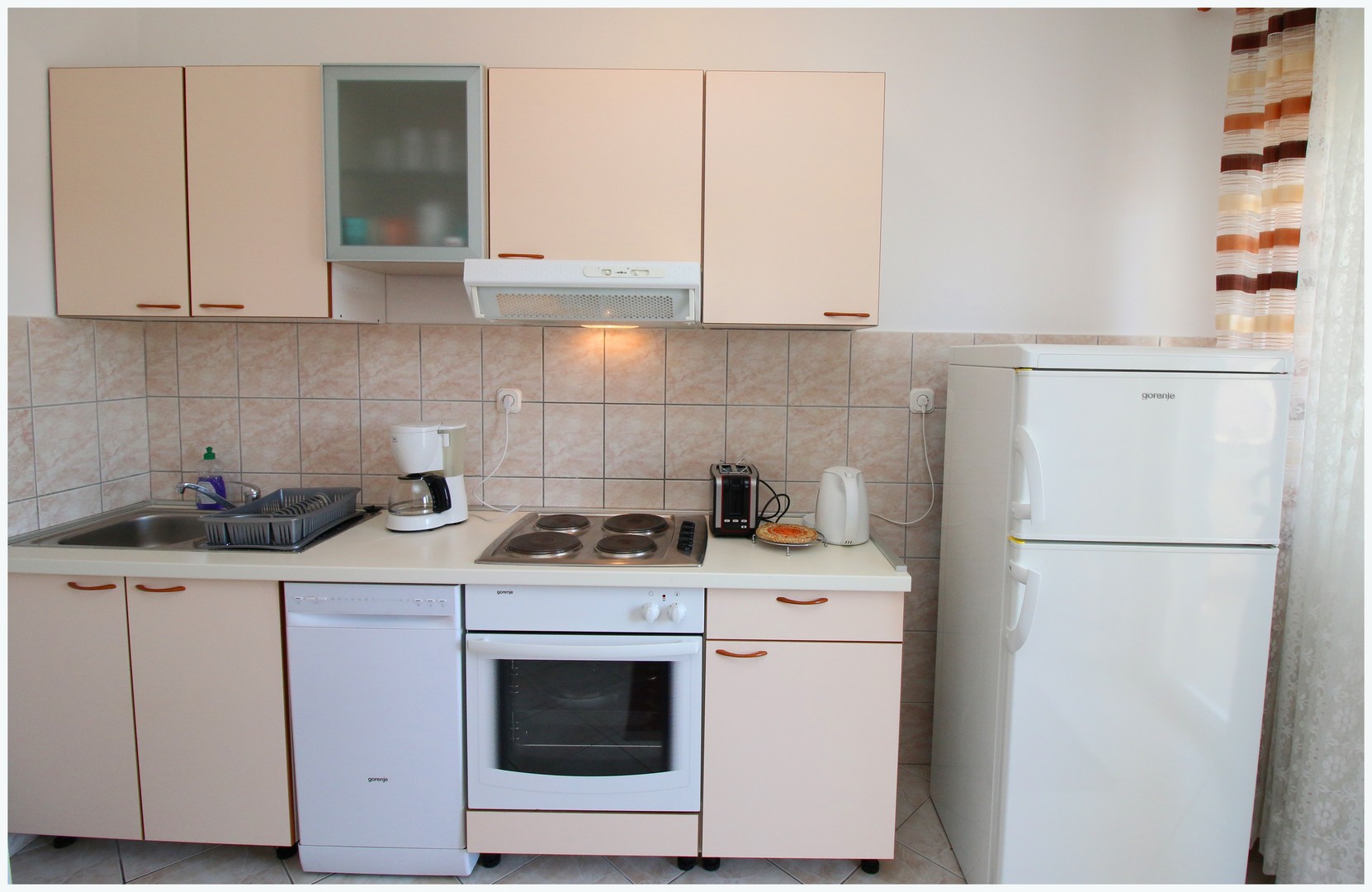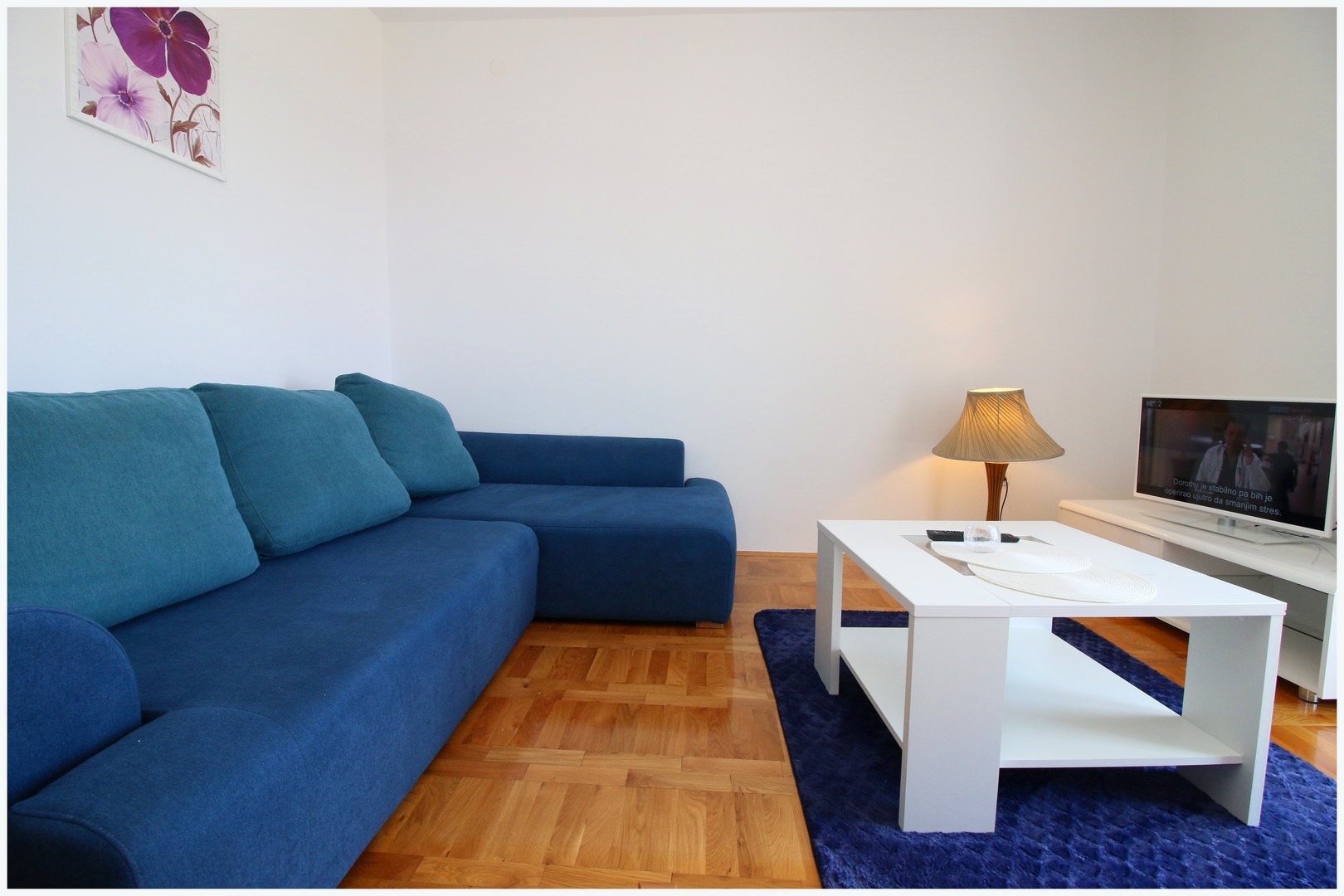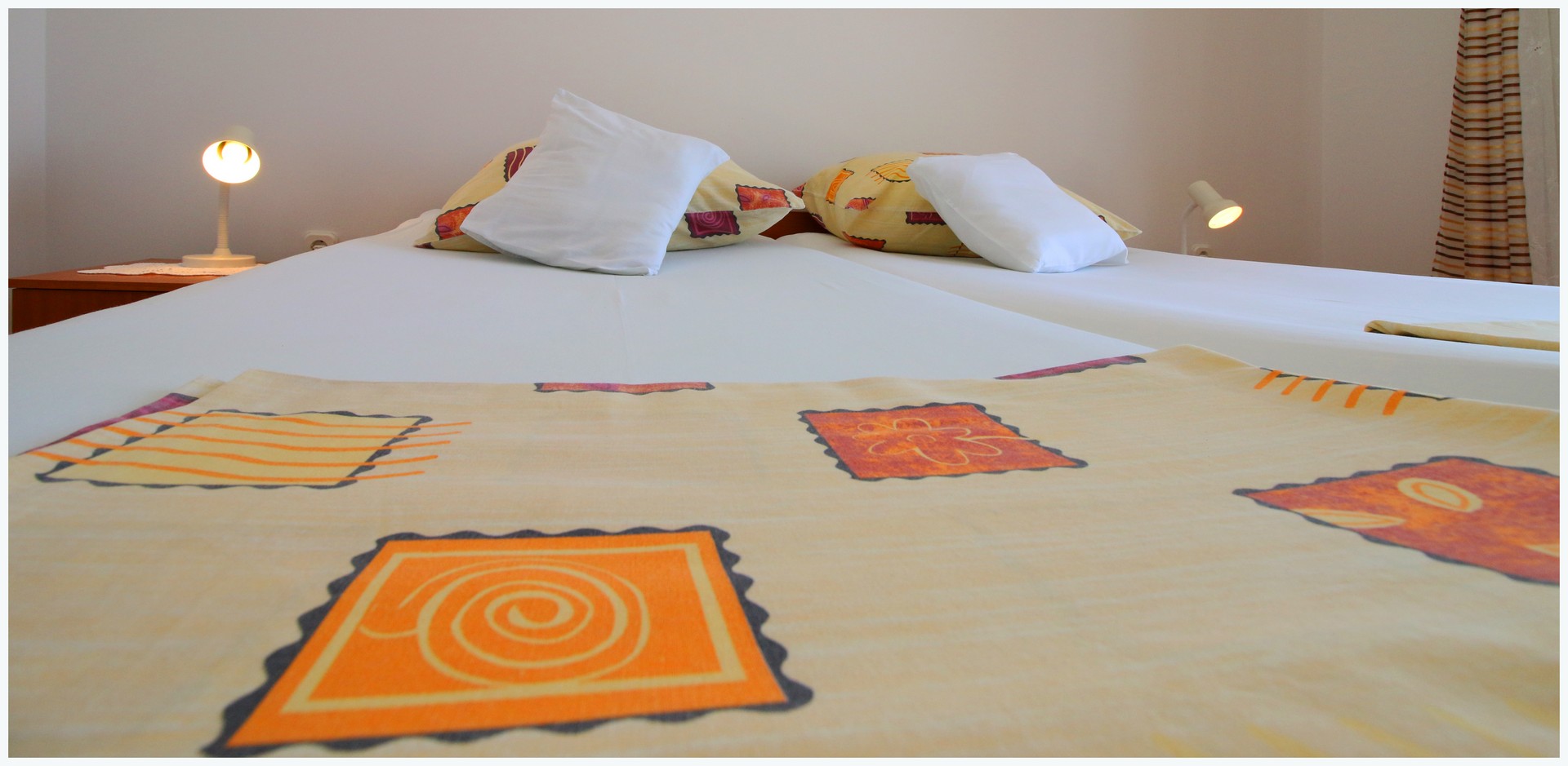 75 m²; zwei Schlafzimmer mit Doppelbetten, Wohnbereich mit Schlafsofa und Einzelbett, Küche mit Essbereich, zwei Badezimmer mit WC, Balkon, Klimaanlage, TV, WLAN, Parkplatz