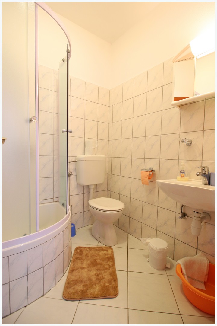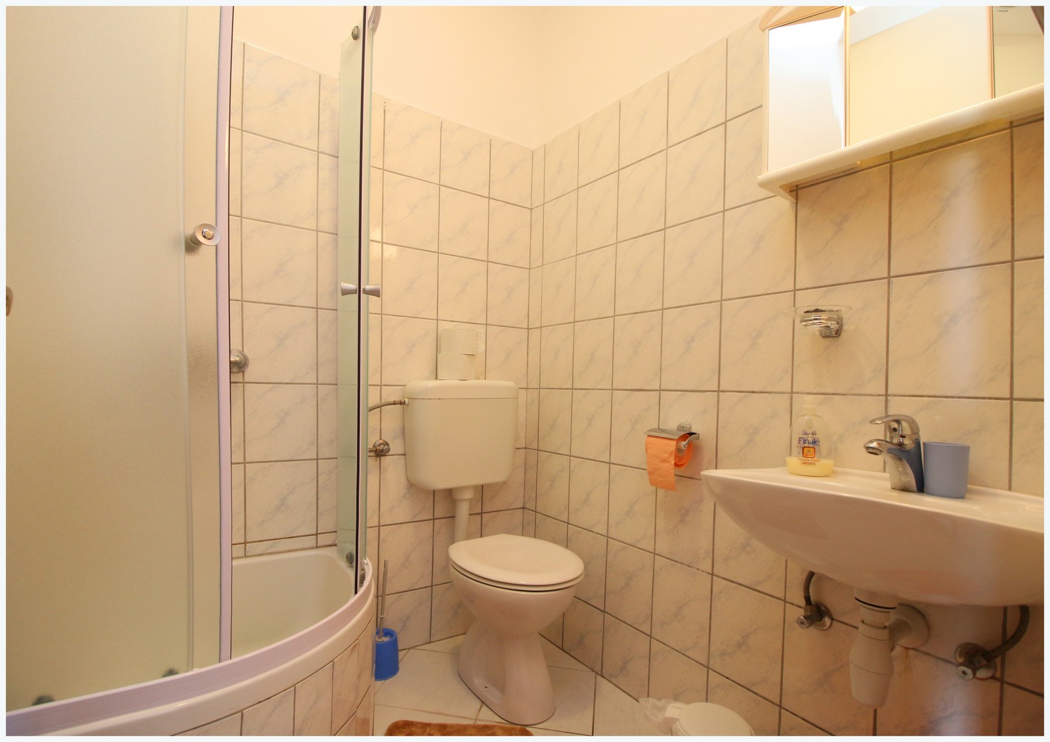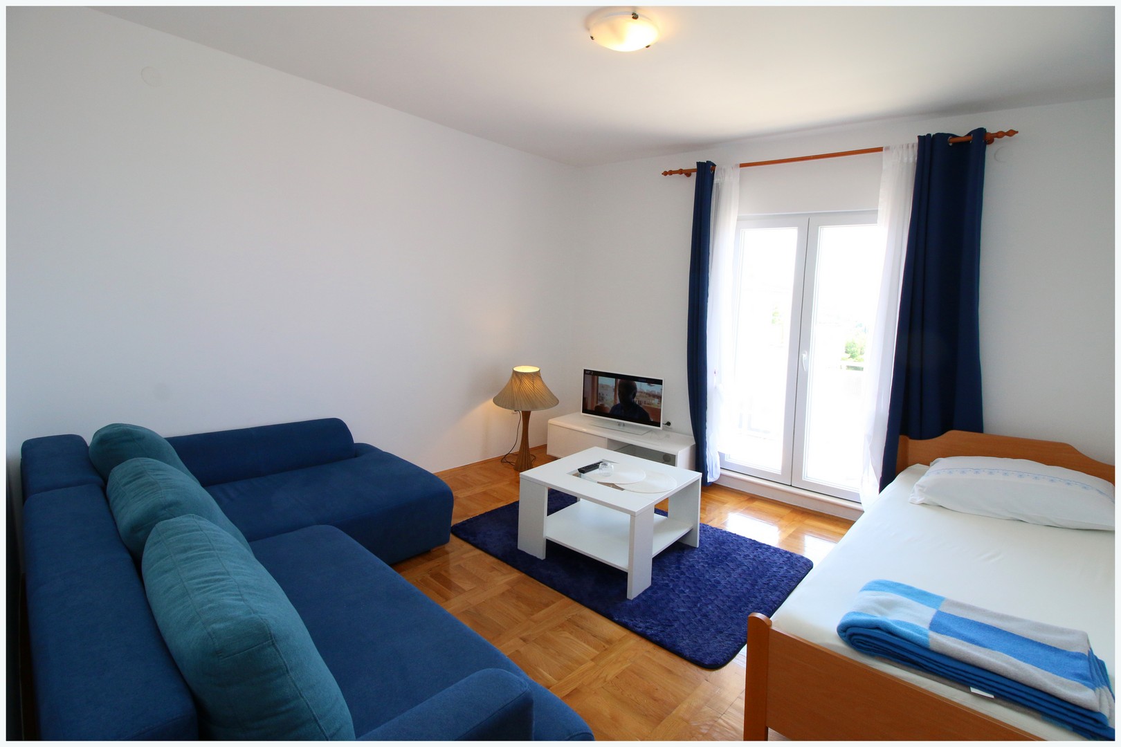 75 m²; zwei Schlafzimmer mit Doppelbetten, Wohnbereich mit Schlafsofa und Einzelbett, Küche mit Essbereich, zwei Badezimmer mit WC, Balkon, Klimaanlage, TV, WLAN, Parkplatz
