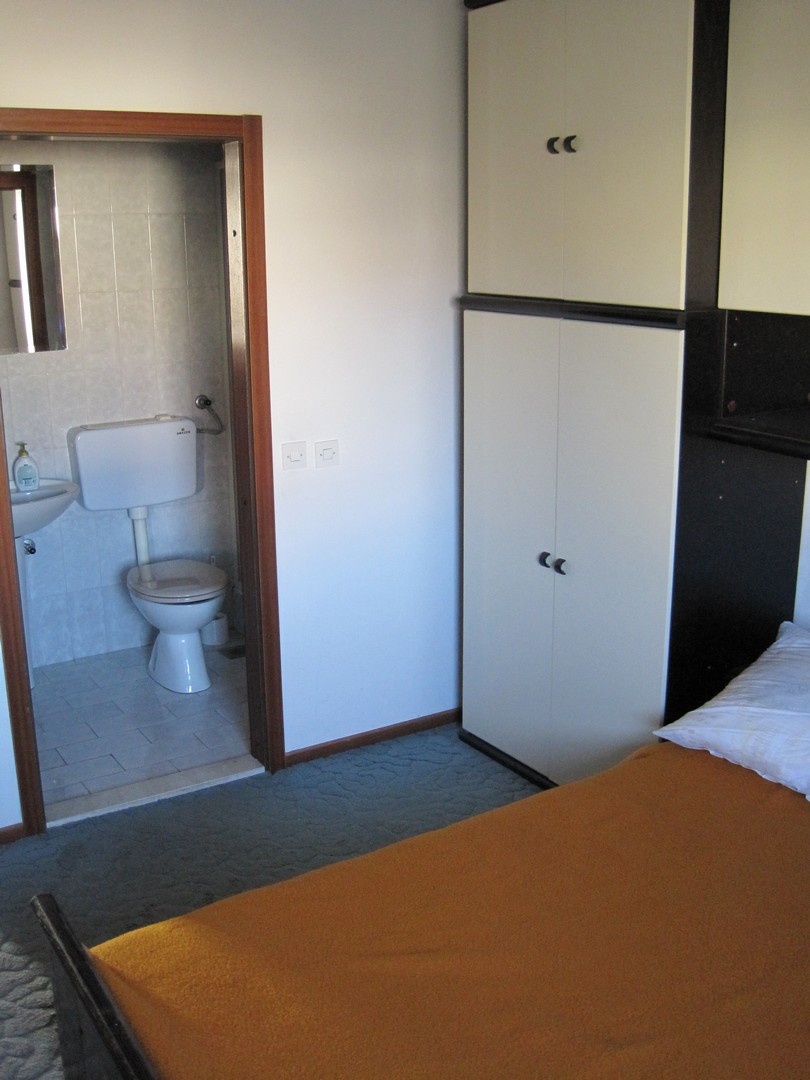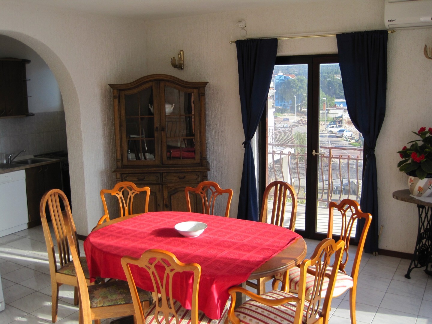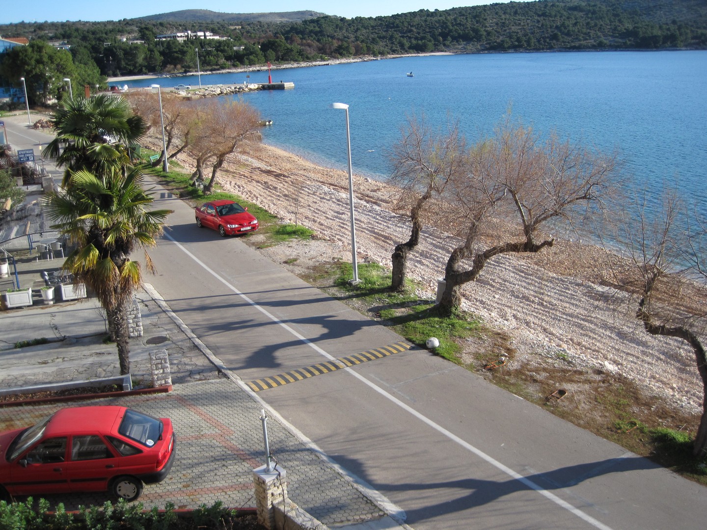 10 m vom Meer und Strand entfernt, große Terrasse mit Meerblick und Primošten, Küche, 3 Schlafzimmer jeweils mit Doppelbett und mit eigenem WC-Badezimmer, Zusatzbett für zwei Personen im Wohnzimmer, Klimaanlage, SAT-TV, zweiter Stock, Parkplatz