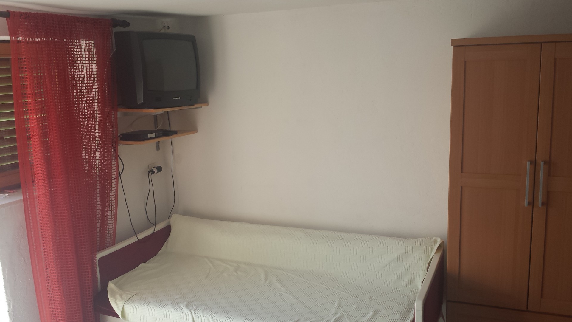 Küche, Zimmer mit zwei Betten und zwei Zusatbetten, Badezimmer mit WC, Klimaanlage, Sat-TV, WLAN, Erdgeschoss, Parkplatz