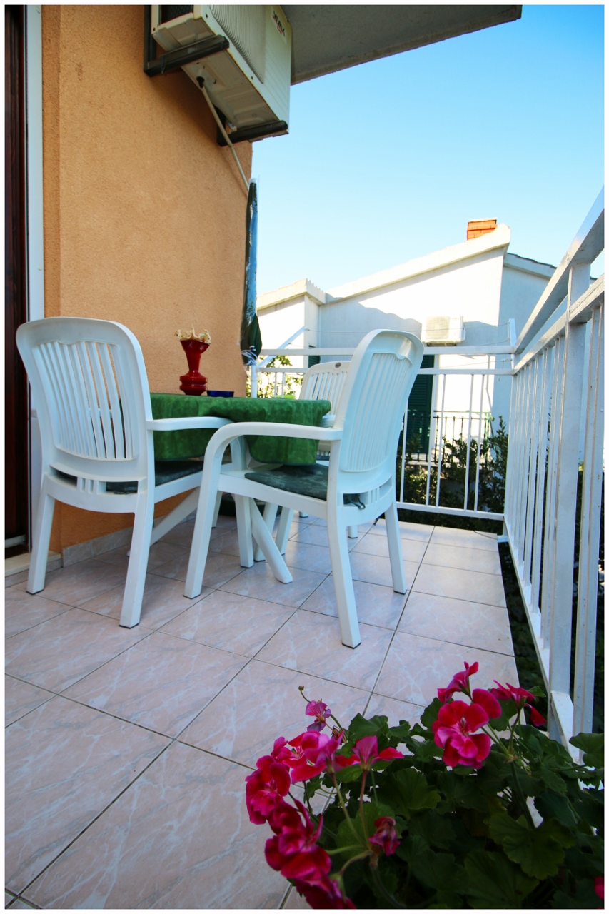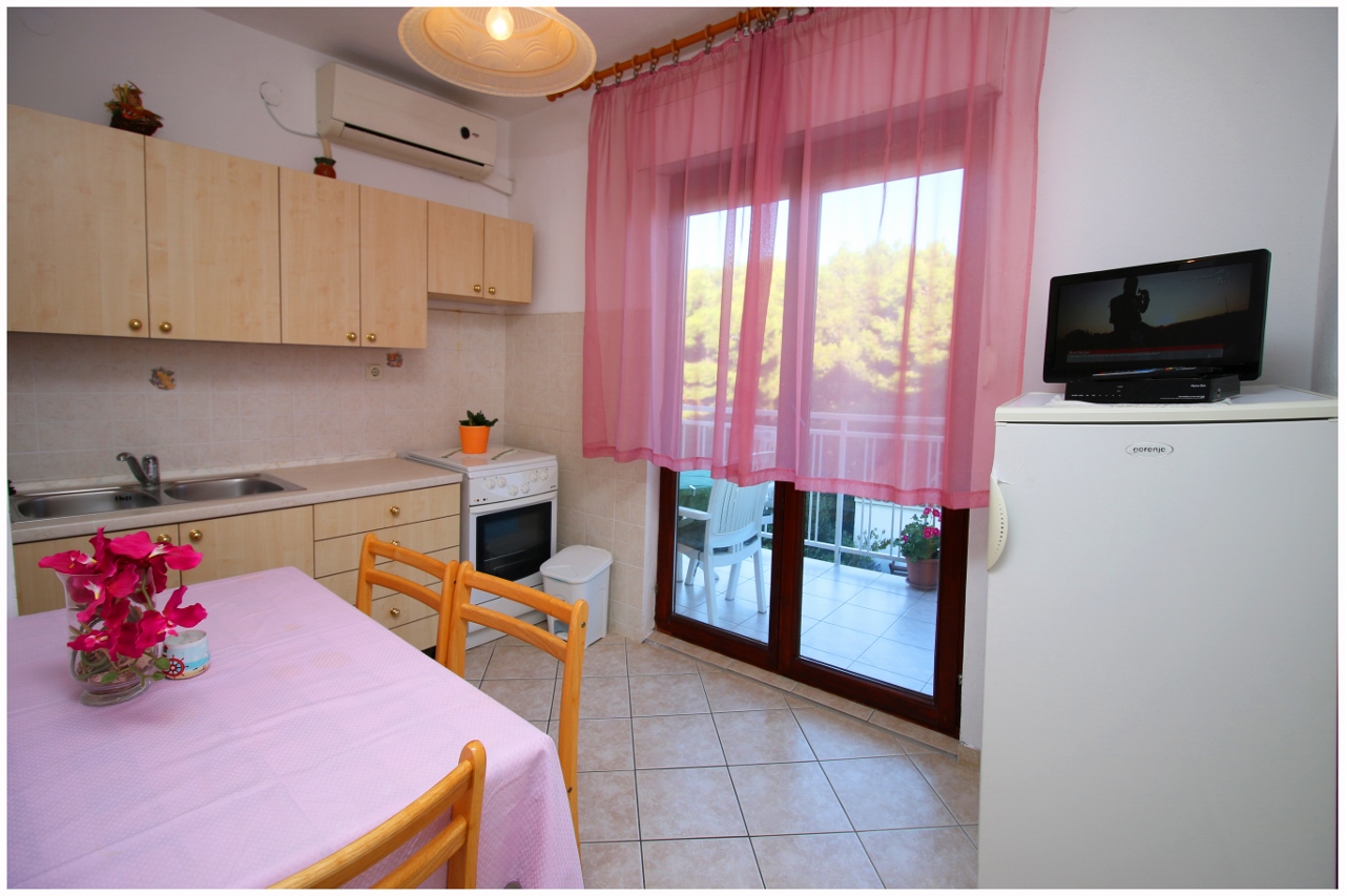Zimmer mit Doppelbett und Zusatzbett für eine Person, Küche, Bad mit WC, Balkon, Grill, Klimaanlage, TV, Parkplatz, 200 m vom Strand entfernt, im ersten Stock