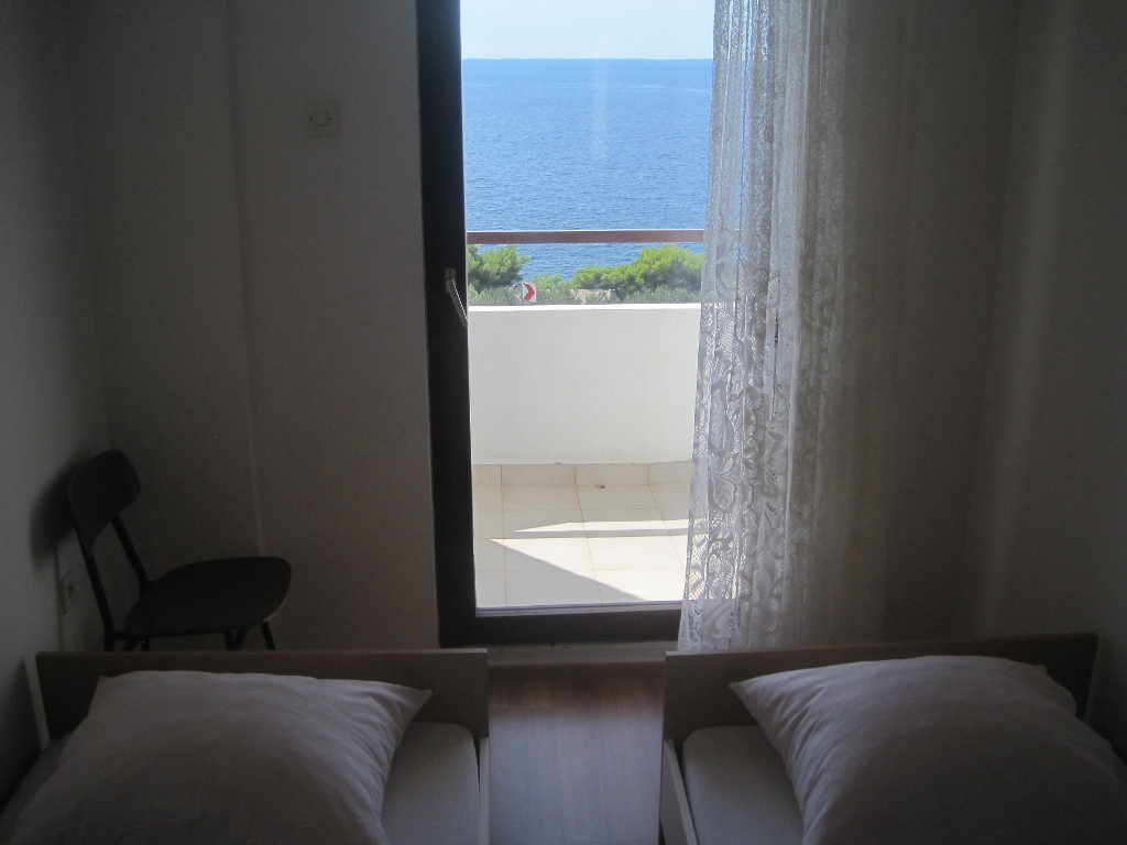 Ferienwohnung mit Balkon und offenem Meerblick für 4 bis 5 Personen.
