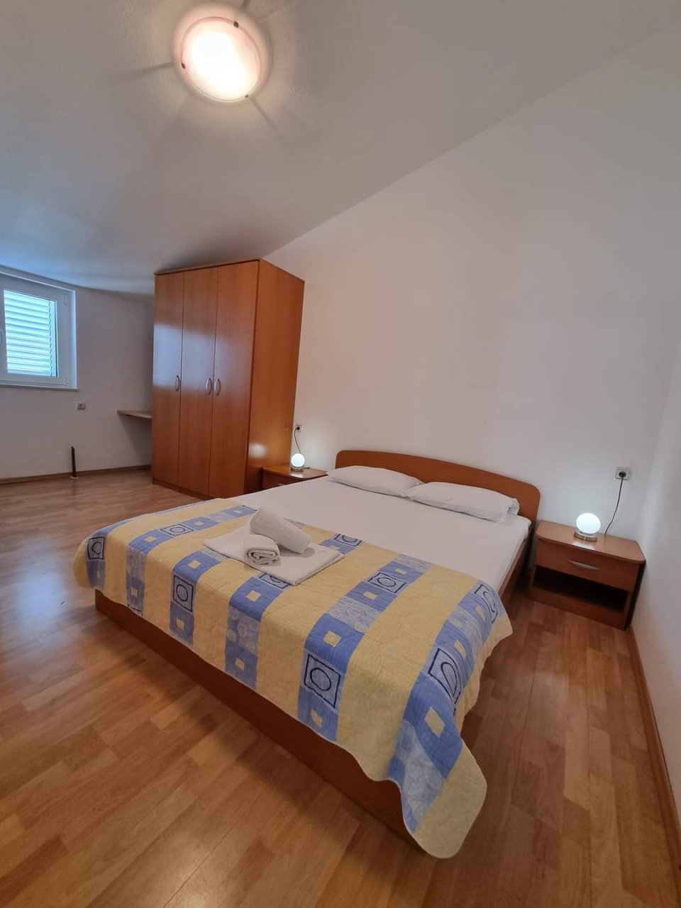 70m²; zwei Schlafzimmer mit Doppelbetten, eins davon mit einem zusätzlichen Einzelbett; Küche mit Esszimmer, Badezimmer mit WC, Balkon, Klimaanlage, SAT-TV, WLAN, zweiter Stock, Parkplatz