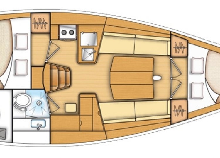 Other equipment | Main Sail Standard, Navigation kit, Anchor, Pillows and blanckets, Wind Speed Indicator/Network Wind, Steering Wheel (SW)/Tiller (T), Life jacket, Nautical charts and nautical guide |