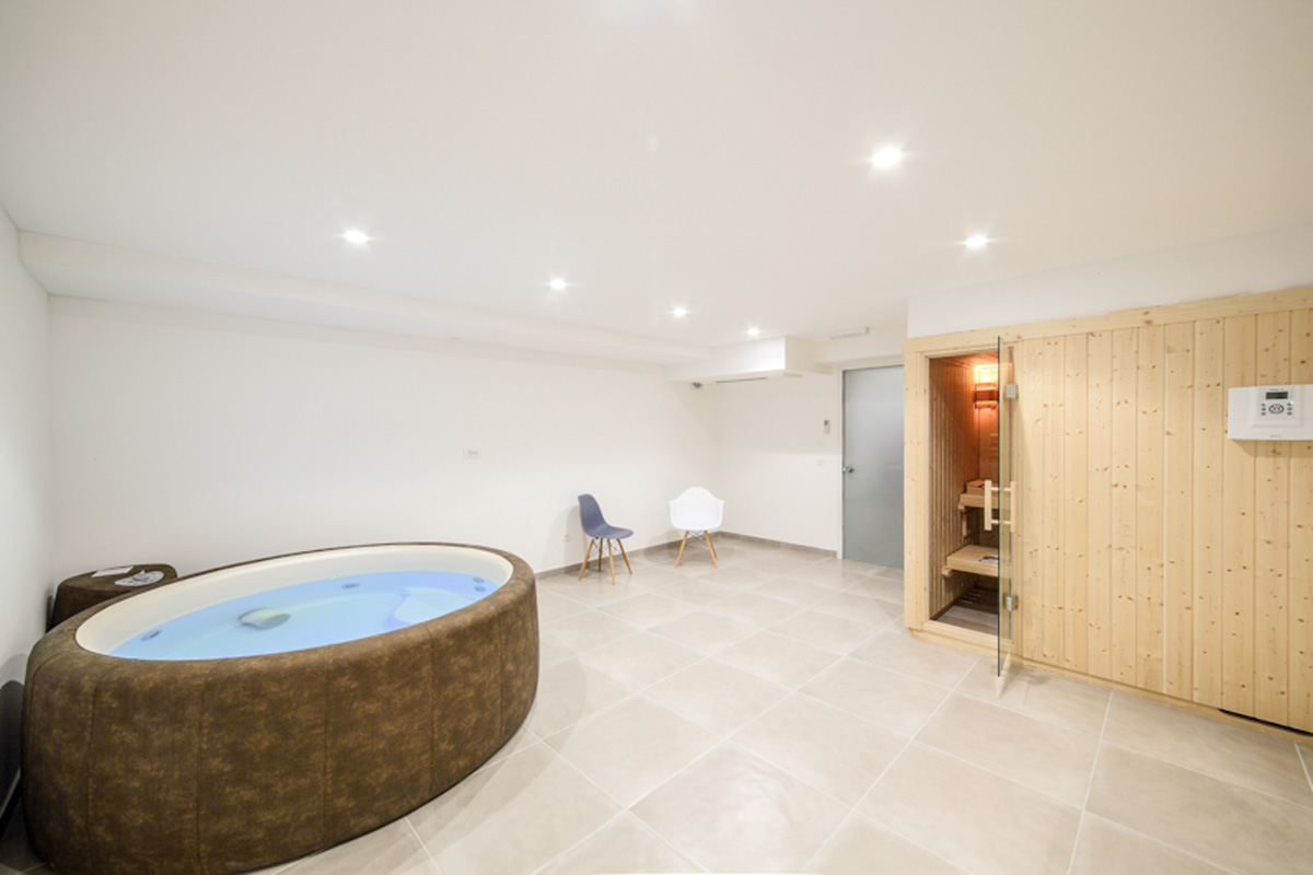 Fitnessraum und Whirlpool.