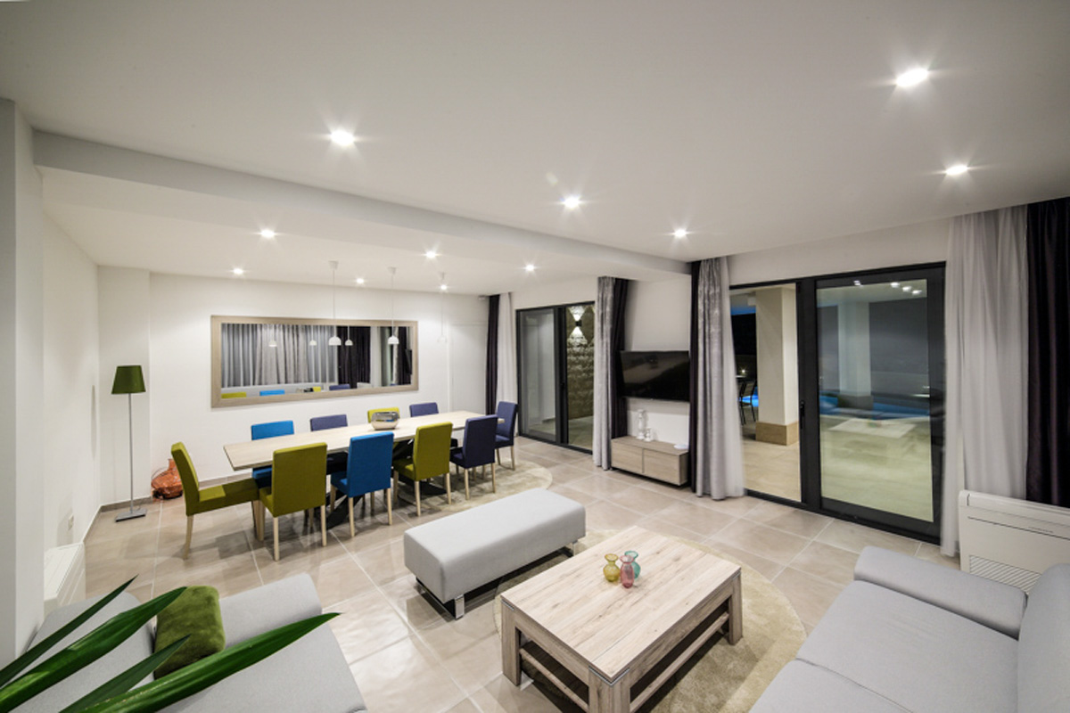 Die Fläche des Gebäudes beträgt ca. 363 m2 und der Außenpool ca. 35 m2.
