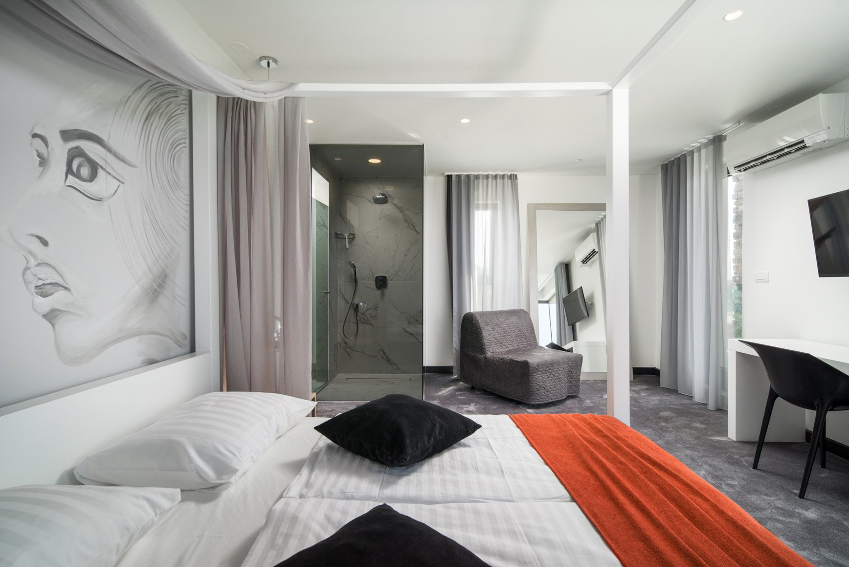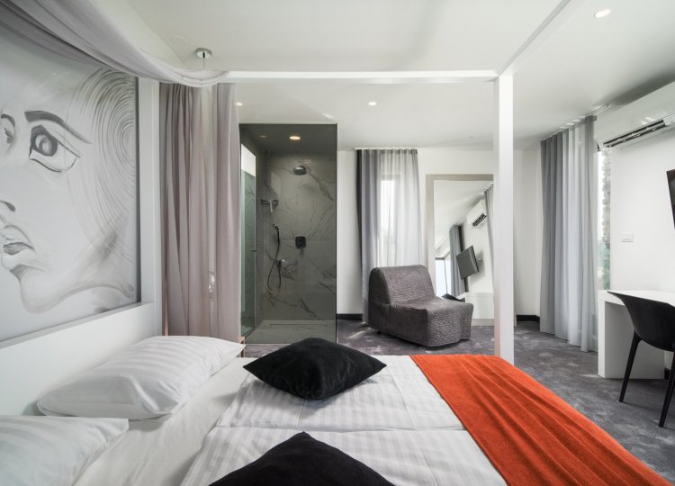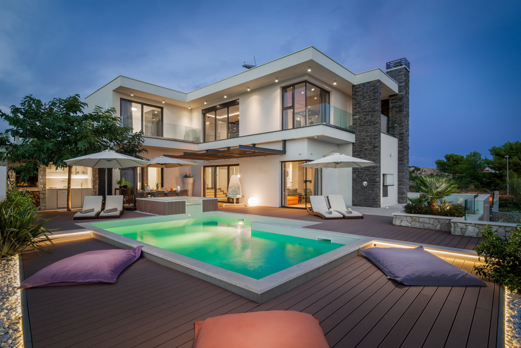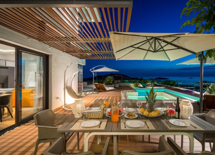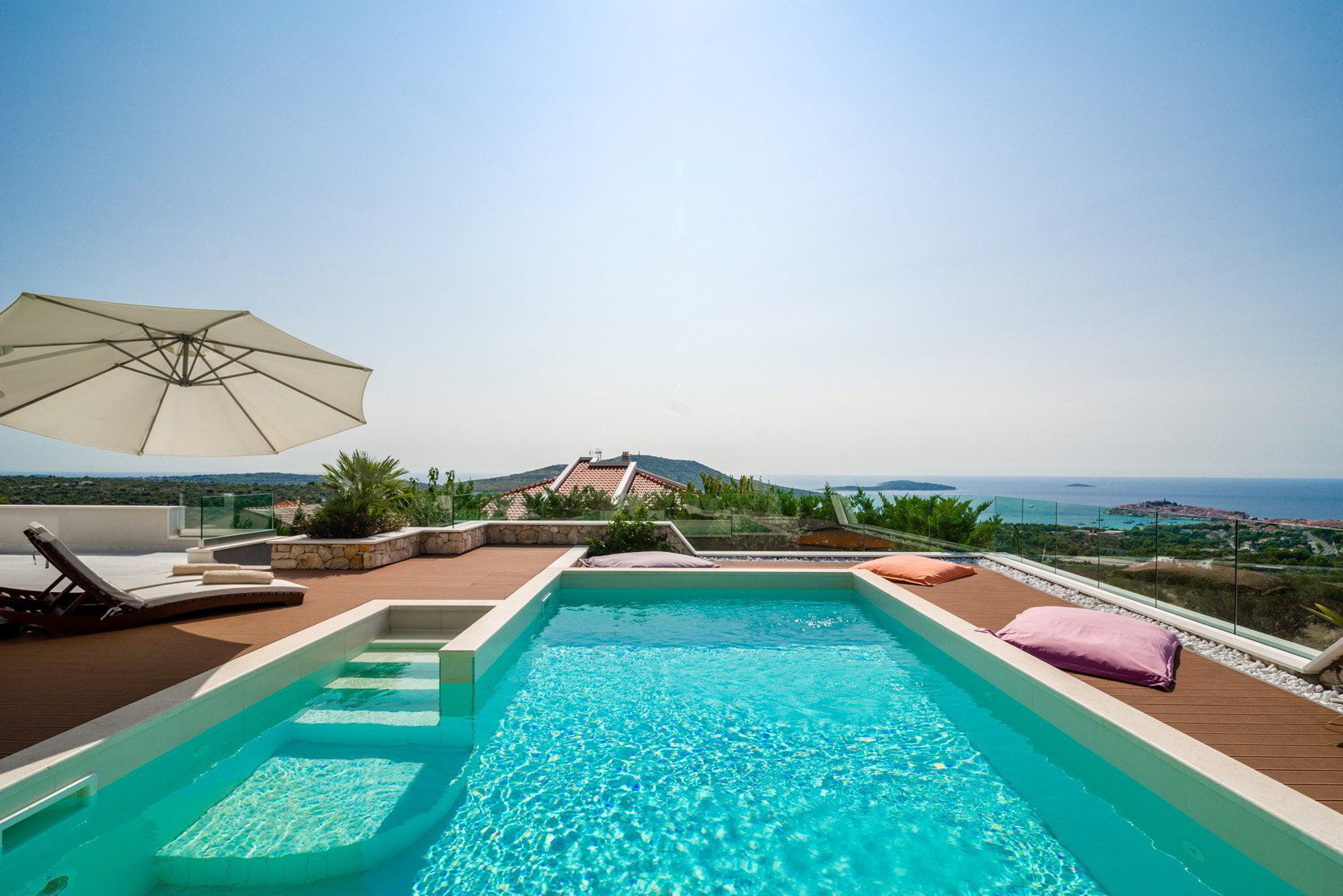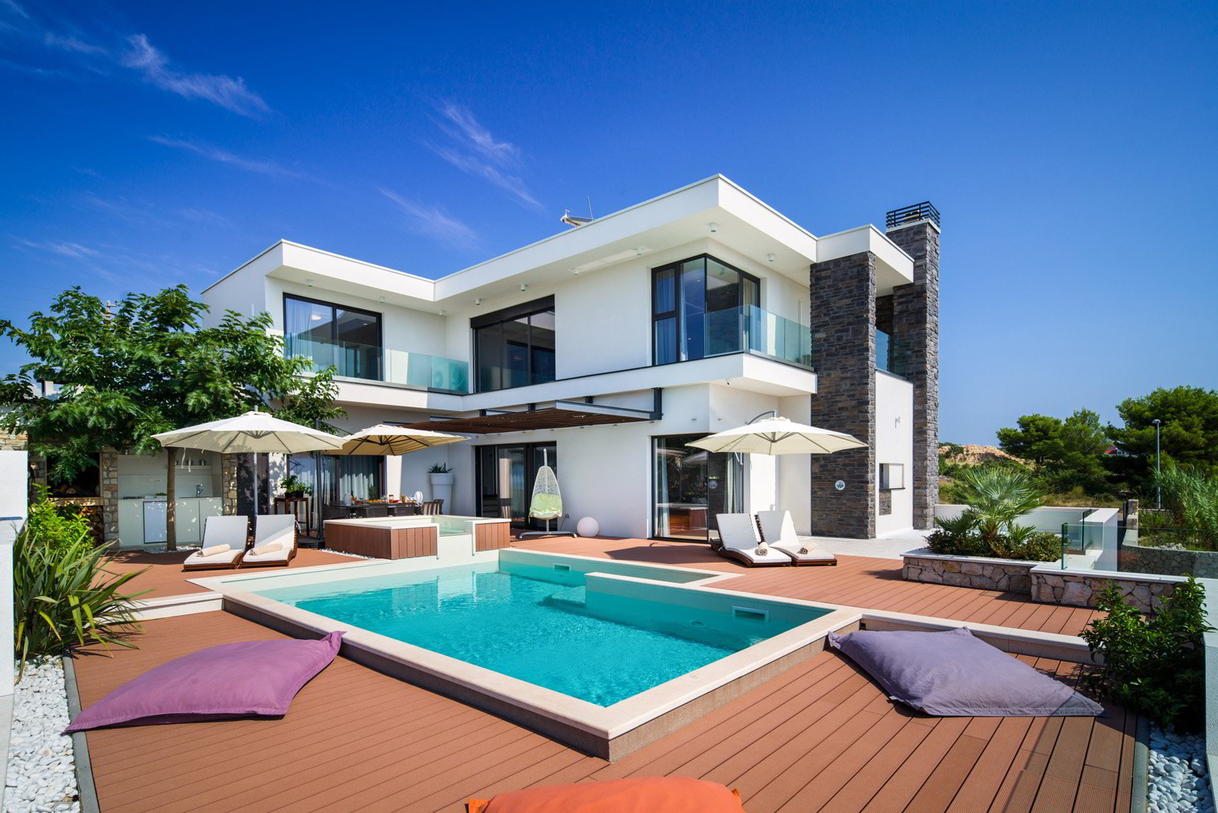Diese klimatisierte Villa verfügt über 4 Schlafzimmer mit Doppelbetten und 4 Bäder mit Haartrockner, Dusche und Hydromassage-Badewanne. Jedes Schlafzimmer ist schallisoliert und verfügt über einen Flachbild-TV. Es verfügt über einen Essbereich und eine voll ausgestattete Küche sowie ein geräumiges Wohnzimmer mit Zugang zur Terrasse. Die Terrasse ist mit einem Grill, einem Essbereich und Liegestühlen für den Strand ausgestattet. Die Villa bietet einen beheizten Außenpool und einen Whirlpool mit Panoramablick auf Primosten und das offene Meer. Sat-TV und DVD-Player sind ebenfalls verfügbar, kostenfreies WLAN und kostenfreie Parkplätze.
