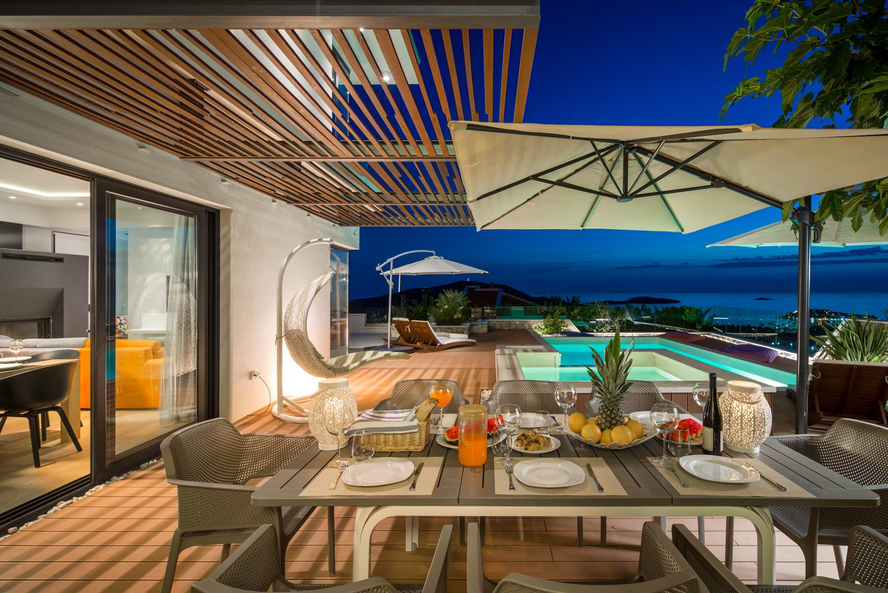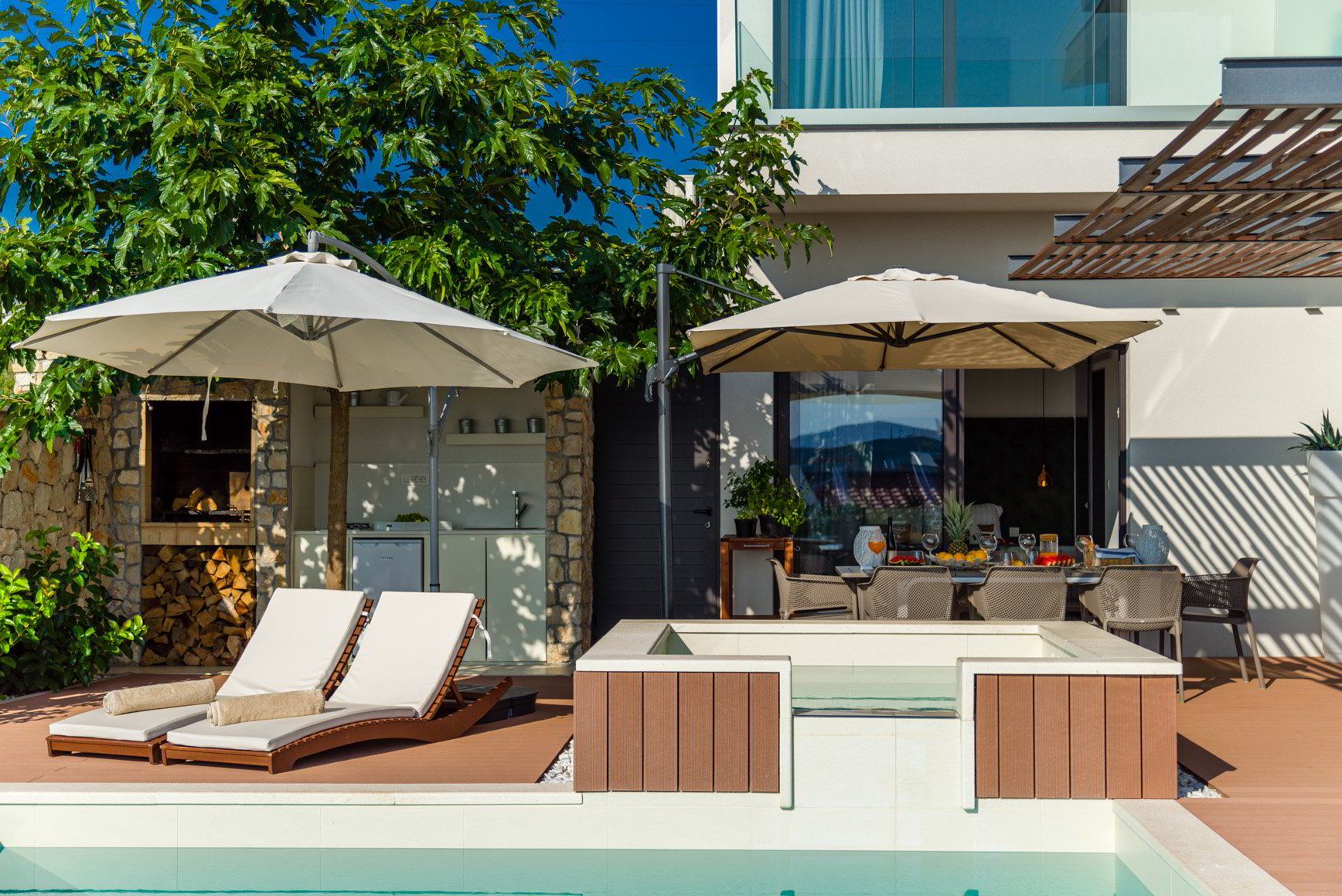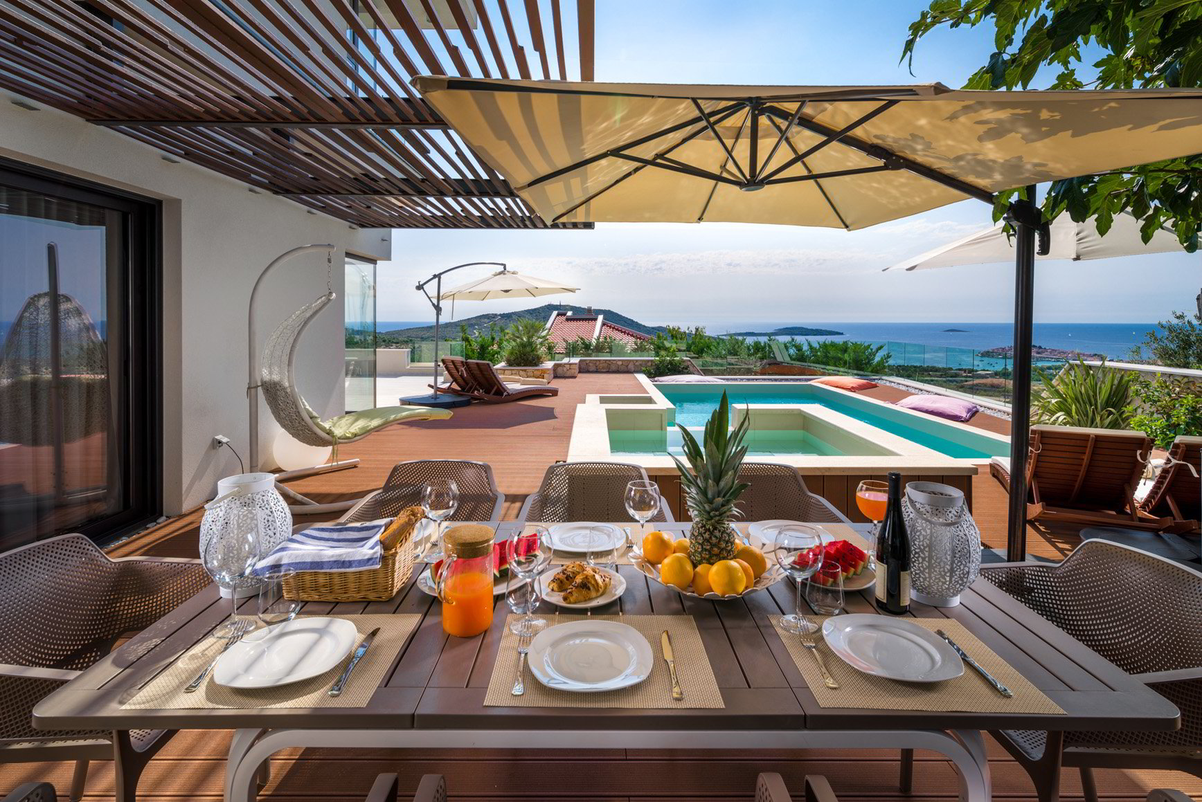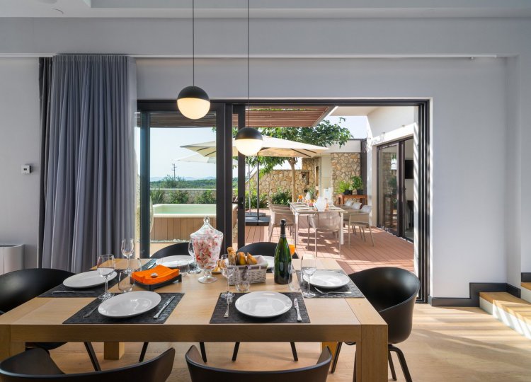 Diese luxuriöse Villa mit 230m² und 4 Schlafzimmern bietet Platz für 8 Personen und eignet sich für Familienurlaub mit Kindern oder Freunden. Es liegt auf einem Hügel oberhalb von