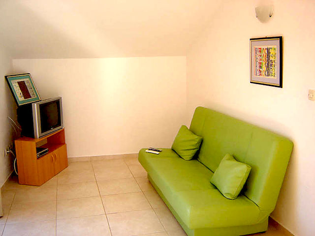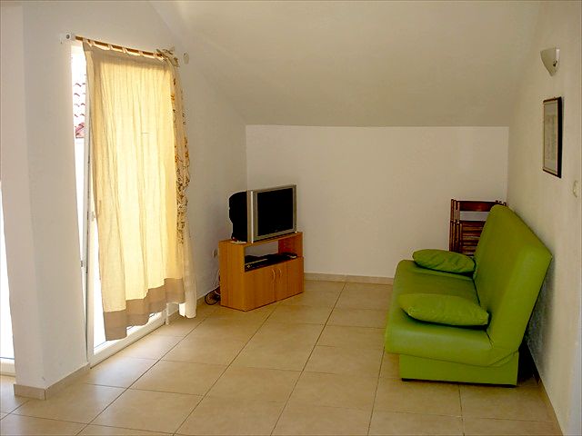 Apartment A4 is located on the second floor of a family house. It has a kitchen, living room, two bedrooms and a bathroom. In each of the bedrooms there is a double bed and wardrobes. From the living room comes to the balcony with a beautiful sea view. The apartment is air-conditioned and equipped with satellite TV, WI-FI, and refrigerator. The price includes bed linen and towels.