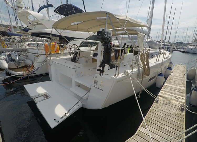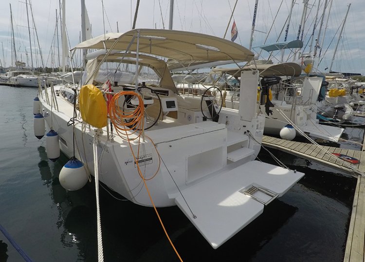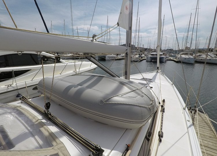 Bimini top , Cockpit cushions , Cockpit table , Deck shower (hot water) , Dinghy with outboard engine , Electric anchor winch , Sprayhood , Steering wheel (2) , Swimming ladder