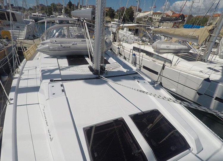 Easy to sail with roll main sail and self tacking jib and can accomodate 8 people in 3 double cabins and two berths in the saloon. Have 2 spacious bathrooms with the shower.